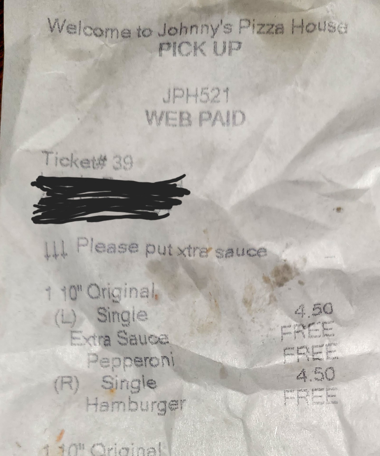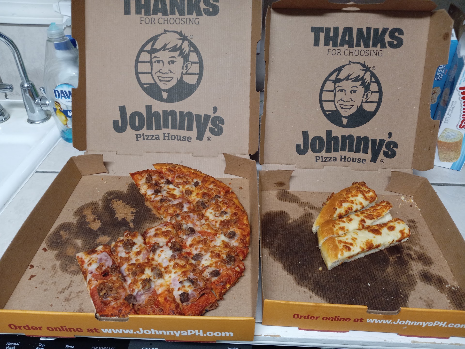 Read moreThere is another review on here that says they wished the quality was still the same as when it first opened. That review is spot on! At least we aren't the only ones who have noticed. This place has really gone downhill with their quality. It's a sad imitation of the original Johnny's Pizza Houses from Louisiana. Here is a small example shown in the pics, but we have plenty more examples. We always order extra sauce. It's clearly shown on the ticket. Maybe they just dont hire people who can read tickets..? Not only do they not do they not give extra sauce, ever, there is barely any sauce on it at all (i removed the topings to show how sad and dry it is). It's like they think "extra sauce" means "light sauce" or something. It is beyond ridiculous how much they skimp on ingredients...not just sauce. It's like this every single time, too. We literally get Johnny's 2-3x per week We are loyal, so we tolerated this for a few months, but have had enough. Do not waste your money at the knockoffs of the real Johnny's! Pizza Shack, Soulshine or even Dominos would give...