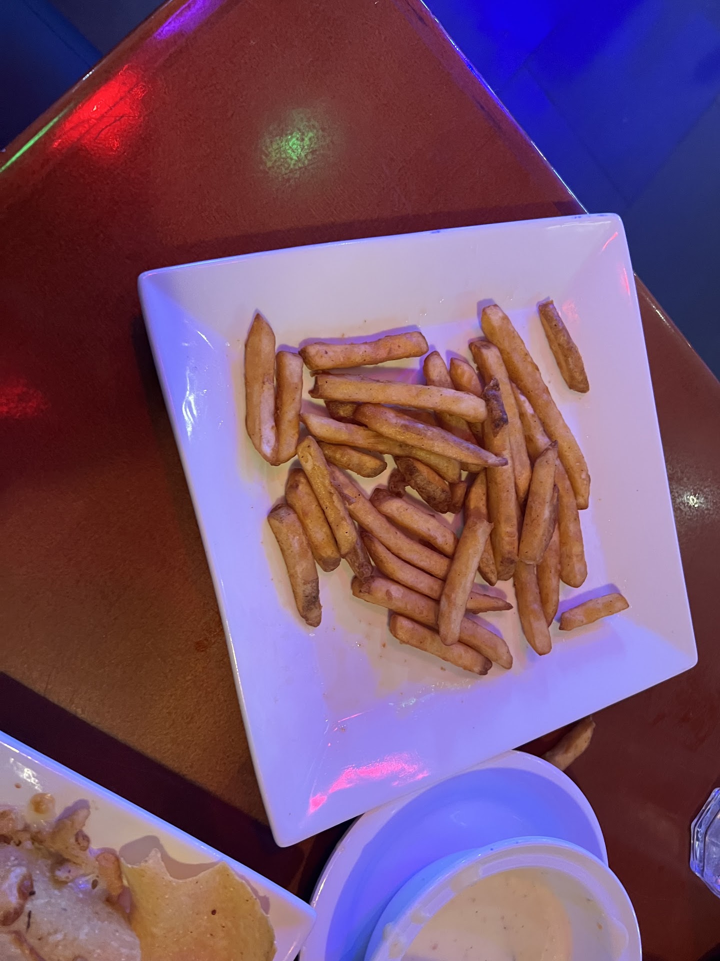 My partner and I went for lunch. They were not at all busy, so you can imagine our surprise when it took a good stretch of time to receive our food. The service was definitely lacking, not because our server was rude, but they felt very inexperienced. They seemed very nervous and like they were not properly trained. This was reinforced by the fact that we sat for a decent period of time waiting on our check after finishing what we could stomach, and while waiting, we watched as our server ran around in what seemed to be a panic. As for the restaurant itself, the decoration is very basic. When going to a Mexican restaurant, you typically expect a bit more extravagance and intimacy. This was not the case here. It was simply lackluster especially compared to Red 8 (the restaurant that operated at this location before). Now to touch on the food. To begin, the FROZEN french fries and cheese dip were the highlight of the meal while everything else was, for lack of better words, just edible. This is not saying much as the serving size for both the dip and fries was so small that I still left hungry. The salsa tasted like a blended up CAN of tomatoes with some salt, pepper, and huge slivers of onion. The Mexican rice was completely bland. If I was blindfolded and fed it, I would honestly believe it was just white rice. The guacamole that came with the fajitas was so green that nobody can convince me it’s not store bought. The beans were just a step above the rice in terms of flavor. I believe that’s simply because it’s beans, and they naturally have their own flavor anyway. The fajitas were also bland, and the portion size was absolutely ridiculous for the price. I am unsure if this is just the lunch portion size or what, but either way it’s shameful. The grilled chicken nachos were also disgraceful. The plate presented had so much melted SHREDDED cheese on top I could barely find the chicken, and I honestly wish I hadn’t found it. The flavorless pieces of chicken I managed to find and separate from the cheese were so small I questioned if they were also shredded. When initially presented with the plate of nachos, I was thankful the portion size coincided with the price, but about 90% of the plate was just the chips and shredded cheese. For approximately $50-$60, it’s safe to say we will not be back until some MAJOR tune...