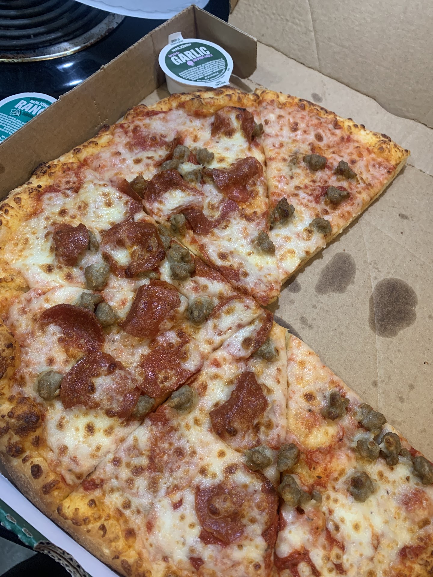 Terrible pizza. We usually only order papa John’s, but this place was terrible. They forgot extra sauces we paid for, and they put so much cheese on the pizza. The toppings and cheese fell off when you would try and pick it up. We ended up just eating one piece and threw it away. When I called the store, they just said sorry and they would let the people making the pizza know, and if we called the next time we ordered, they would give us two free sauces. I guess they don’t understand what free is when you already paid for something you never received. They didn’t offer to refund the order for the inedible pizzas, they just want us to order again and hope it’s not terrible again. No thanks. I’ll order dominos...