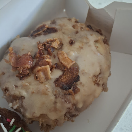 Read moreWe want to try the new donut shop. We got one chai pumpkin topping and one maple pecan topping donut. The inside was like a croissant with nice crust and different flavored toppings. We also got a doggie donut, both dogs enjoyed them. I liked that they were not overly sweet and nice texture. They are $3.95 each which is a little high but good size so one each is all we needed....