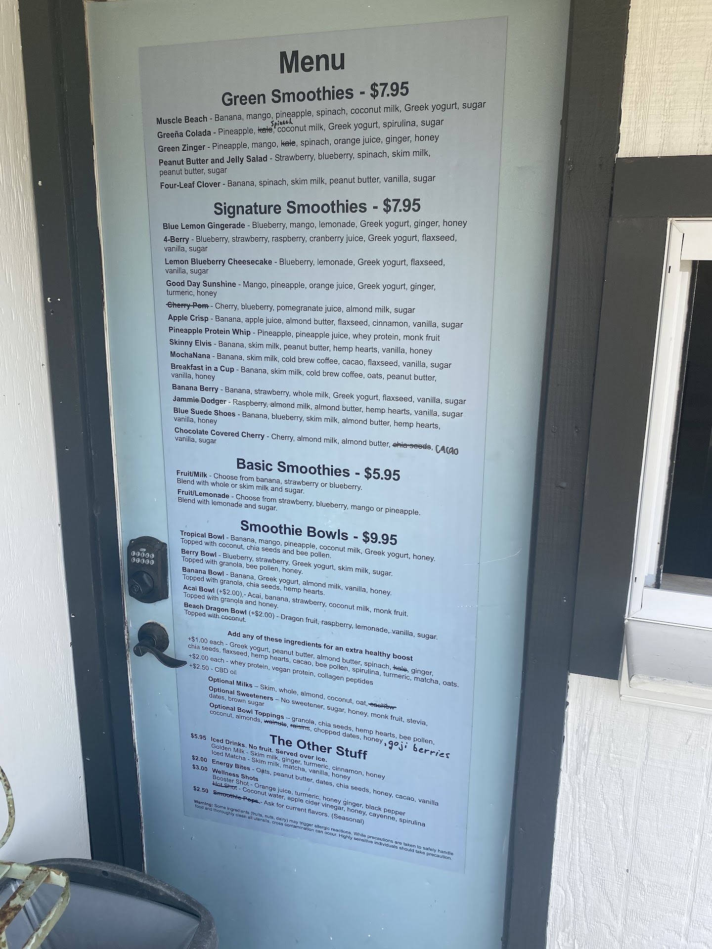 It’s a really cute place! It’s small so the only seating is outside. Dogs are welcome! The menu had a nice variety in it. I ordered the beach dragon bowl and a matcha tea. I enjoyed the flavor of the matcha drink a lot. I ordered with oat milk and that tasted really good. The bowl was also a nice refreshing lunch option. I wish there was an option to sit inside on hot days but I didn’t mind it too much. The hours online are different then the ones I took a picture of outside...