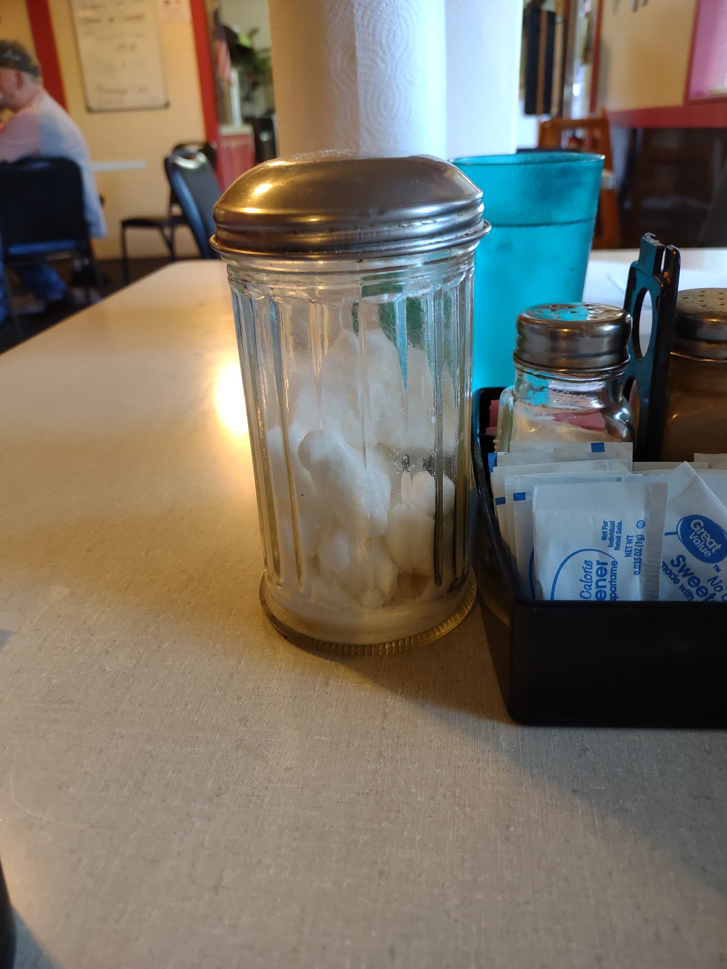 Expensive dive. When they hand you a canned coke with a cup of ice turn back now. Place was extremely warm and uncomfortable. The window air conditioner was not cooling properly. It was in the high 80s to 90 in there. Place is run down and appears they are trying to run it cheap as possible. Dorothy is very nice. She is the waitress, the cook, the door greeter, the phone operator, cashier all while she cooks. We were the only ones ordering and eating and 20 mins in she confirmed our order to get started. Food delivered at 50 minute mark. No menus, a board on the wall with no prices. No descriptions of the foods with different names. I asked the prices of our entrees 9.99 each, coffee 1.79, 1 can coke? I asked did hash browns come with my omelette? She said I can give you hash browns. So roughly a $22 dollar meal was $32 plus tip. The coke or hash browns were expensive! I don’t know because there was no prices and no menu! The food was just ok. Eatable. The hash browns were freshly grated, hard and chewy tasted like plastic. She came out talking to others while holding the raw potatoes she was cutting. The omelette had a inch thick of cheese and barely any sausage. My coke had.already melted down in the heat and was water logged. Her husband in a tank top was pulling double duty as well, running to the store, sitting with friends, answering phone, picking his teeth with a toothpick and tended to our food as well and delivering it all to our table while never washing his hands. Dorothy did wash her hands each time she did something else. A customer who also had already eaten was allowed to freely use the ice machine putting his hands in it. The place gave off a nasty vibe. The sugar on our table was big round rocks in the sugar holder lol.I’ll try to load the picture. It says famous for breakfast but I’m not sure it means famous for good food because it was...