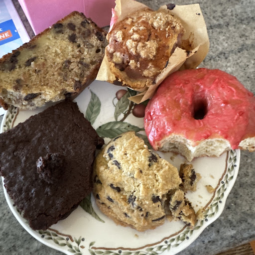 I am sorry but I was not happy with my purchases and I will explain. I bought a chocolate chip cookie that was dry and crumbled into pieces upon my first break, that was my first sign of oh no this is not going to be be good… and indeed I was right. The raspberry muffin was also dry and tasted stale as did the raspberry donut, gummy and at least a day old or maybe two day old taste, it did not taste fresh at all. Dry dissapointing. The brownie was not my cup of tea overly sweet and not cakey enough, I’ll chalk that up to not my style, I prefer silver palate style. And the banana bread wasn’t too bad , the slices were overly thick though and heavy. I liked the addition of chocolate chips and nuts. I also got the egg sandwhich and boy do I regret that! I can’t get the salty taste of the overly doughy bun out of my mouth and it’s been 5 hours!! The eggs and cheese and bacon part were OK, not great, hardly tasted the bacon, but the bread ruined the sandwhich. The coffe wasn’t bad.
