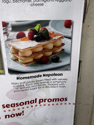 Our main came and I chose the fettuccine alla bolognese. Interesting thing was I was eyeing the kitchen and (assuming) saw the chef pull the fettuccine right before it arrived on my plate. The flavors were so hearty, seasoned to perfection, and pasta very fresh. It brought me right to a village in Italy.