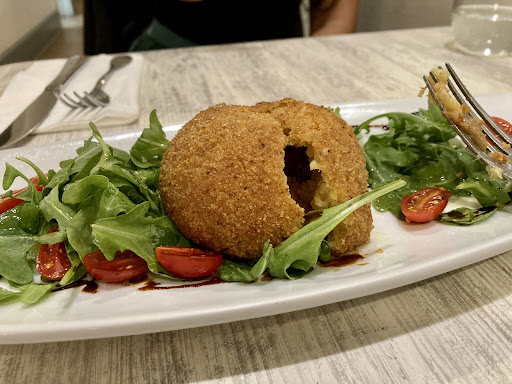 Our meal started with arancini siciliani, the Sicilian rice balls. The flavor was very fitting and matched perfectly with the vinaigrette I believe it was placed on.