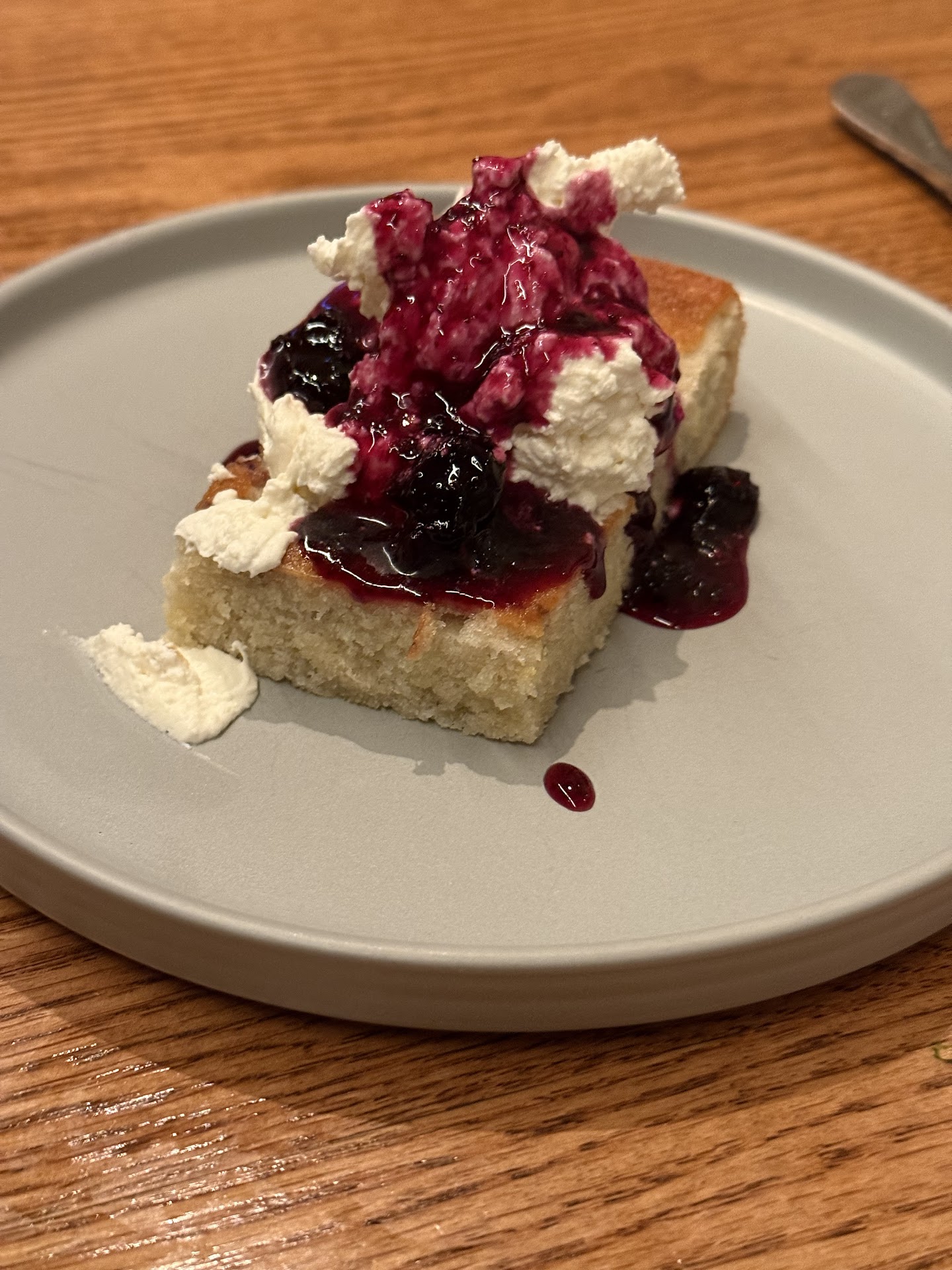 Dessert: blueberry lemon cake was very tasty. We loved it! Presentation could be a bit nicer but flavor wise it is delicious!