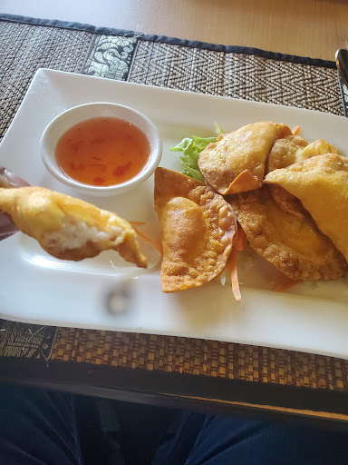 Read moreI went w a couple girlfriends for lunch. I got crab Rangoon as an appetizer. They got wonton soup and spring rolls. All of it was delicious. As an entree, I got the Kua dish. It was the only one with wide noodles. Sooooo good. My friends enjoyed their food too. One got crab & shrimp fried rice, the other got the dish w the cellophane noodles and mushrooms. All the dishes had enough to take home for a second meal. It is all made from scratch and to your desired temperature, regarding spice. The actual restaurant is...quaint. it's small and clean. I don't think it would hold more than 30 ppl. The bathroom is a single and the door didn't lock for me. I just peed and prayed. Lol. Service was OK. Considering we were the only ones in the restaurant, the server seemed like he didn't want to be bothered. Food came out quickly tho. The lemon marscapone cake looked delicious, so I...