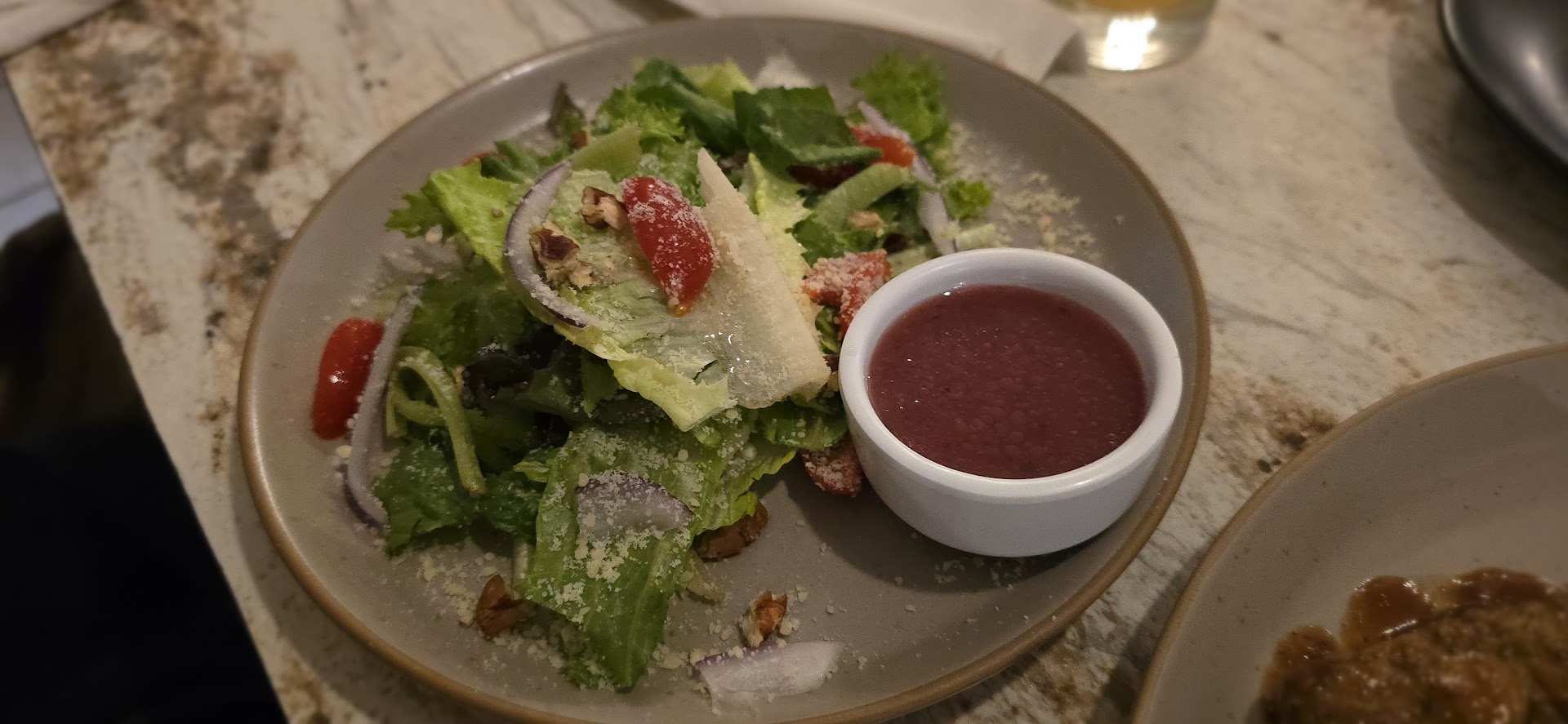 We started with the sorullito corn fritters, golden and stuffed with cheese, laid over a sweet guava sauce that made every bite pop. Then came the mahi mahi bites, tender, juicy, resting on tartar sauce, and disappearing way too fast. The side salad—a vibrant mix topped with grana padano and raspberry vinaigrette—was so fresh it felt unfair to every other salad I’ve ever had.