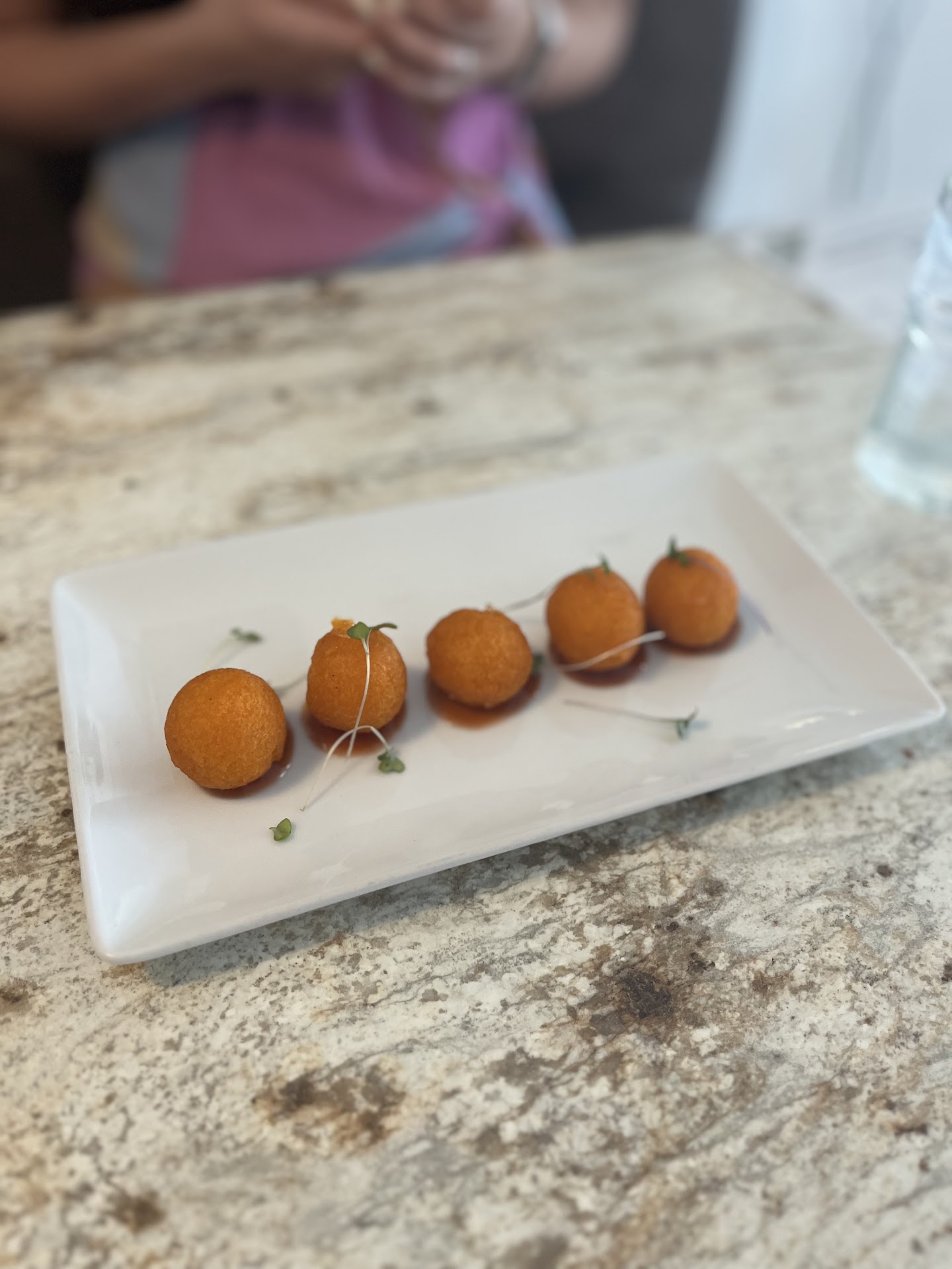 When her and Michael (the owners + workers) realized we were hungry they offered to make food, even after having closed the kitchen--which was absolutely delicious! Beautiful creative Puerto Rican dishes, tapas-style. The eggplant fritters were my favorite, although everything we tried tasted great.
