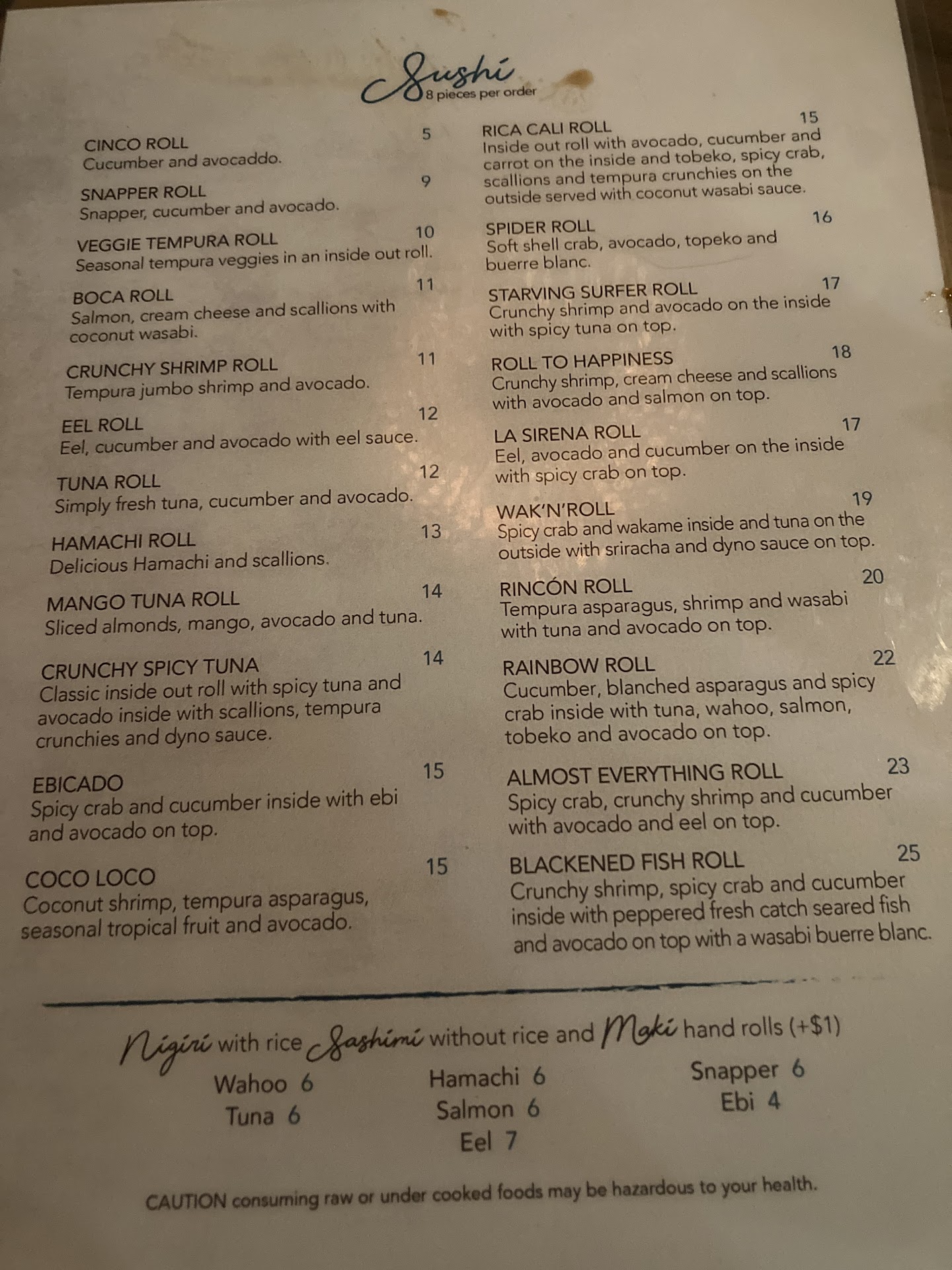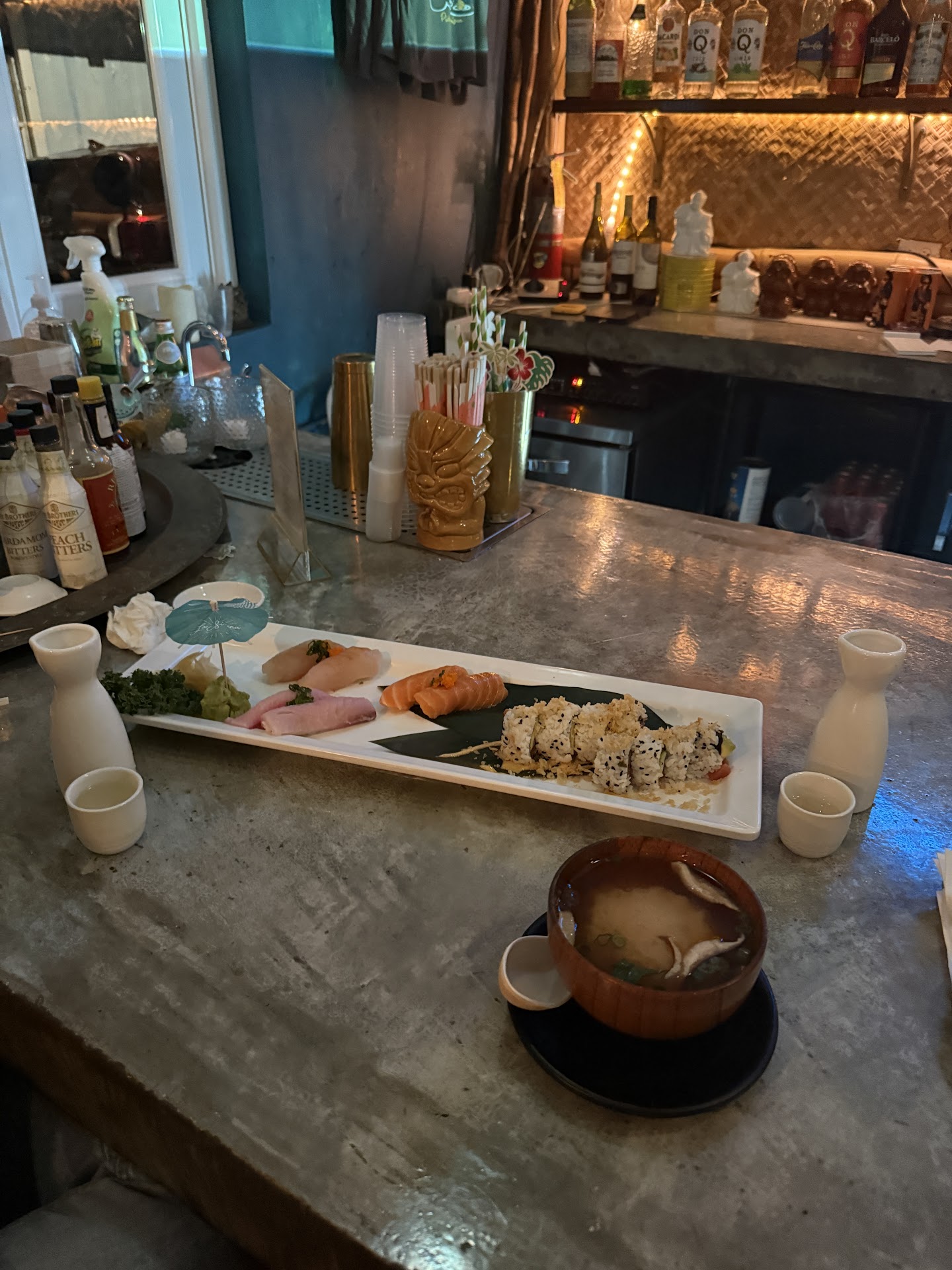 RECOMMENDATION: We found a great sushi spot in Rincón on 115 called, Bakku, that has delicious food with beautiful presentation and great drinks. Oh and EVERYBODY we saw while dining was...