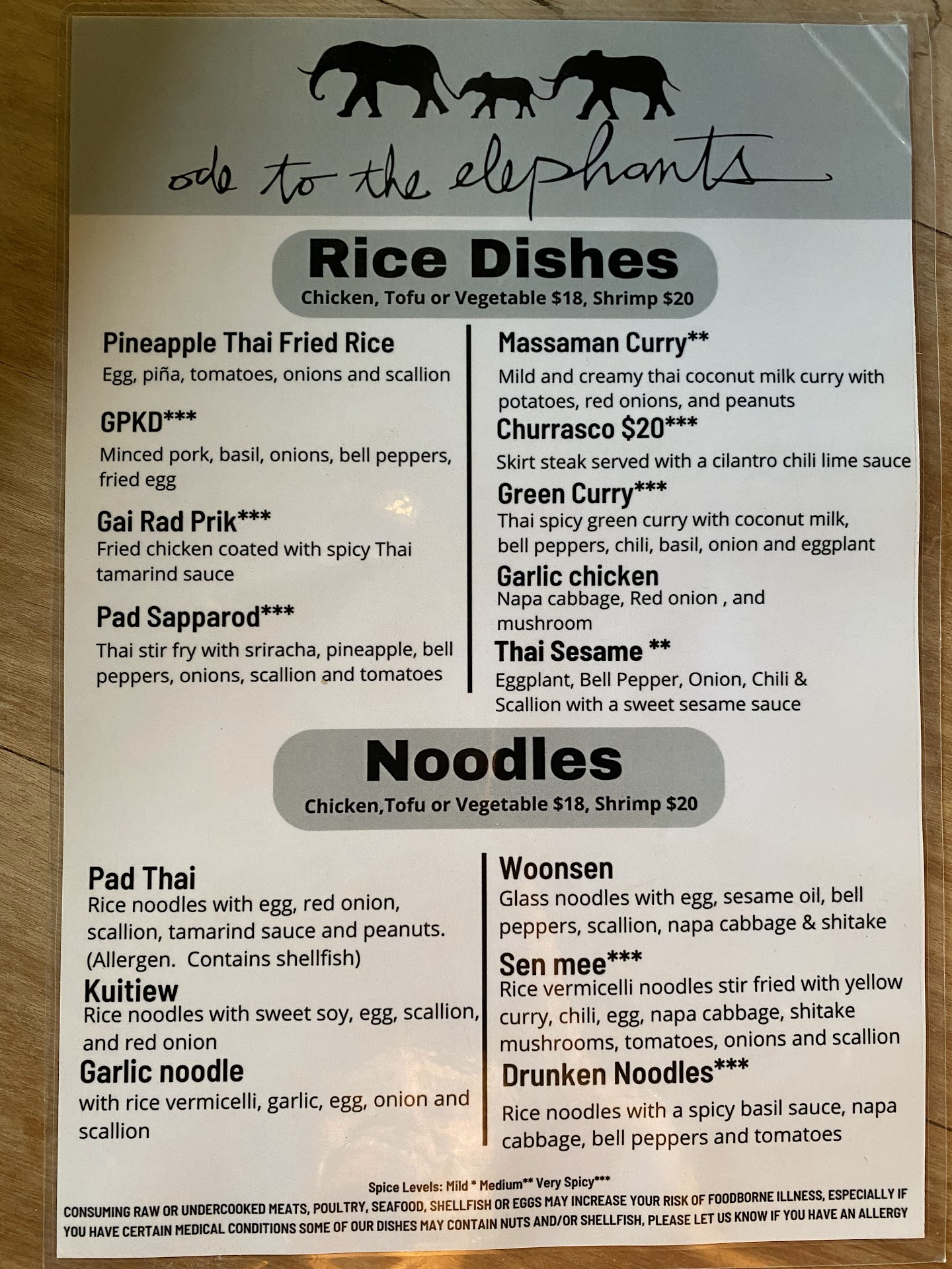 Pad thai ⭐️⭐️⭐️⭐️⭐️ so good and generous serving Gai Raf Prik ⭐️⭐️⭐️⭐️⭐️ it’s spicy and so flavorful GPKD ⭐️⭐️⭐️⭐️⭐️ it’s good Spring Rolls ⭐️⭐️⭐️⭐️ It’s good but need more veggies inside Shumai ⭐️⭐️⭐️⭐️⭐️ it’s good and big size per pc Iced ginger tea ⭐️⭐️⭐️⭐️ good but a little sweet Ginger tea martini ⭐️⭐️⭐️⭐️ good