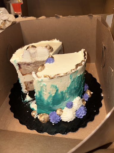 I was unsure about posting this. However looking back at the photos, Iâm disappointed. I ordered a cake for my birthday from Aliâs. It was a simple 6 inch vanilla and butter cream cake. We exchanged emails on the color and design of the cake. Again, it was a super simple design (at least I thought). I placed the order a little over 2 weeks prior to March 13th. The emails included a photo from Pinterest of what I wanted the cake to look like, along with the color (champagne instead of blue) and the number â24â written on top. On March 13 (planned pickup date), I waited 15-20 minutes for my cake. The girl came back sometime in between and states she was trying âto find a lid for my box.â I thought maybe they were busy considering there were a few people ahead of me completing their orders. When my cake was brought out to me, I could only see the top. I thought in my mind it looked peach and yellow instead of champagne. I also wasnât a fan of how the florals turned out. It was my mistake for not saying anything right there. I should have spoken up but didnât. I paid the remaining expense for my cake (I paid the deposit when I placed the order 2 weeks prior) and left. When I got home I immediately opened it to see an unfinished cake. The flowers looked like they were smeared on last second and werenât completed. Of course the color was wrong. It looked like a quick, unfinished, maybe last second job? The cake actually wasnât level from top to bottom. It sort of tapered out. (As seen in the photos). Again, I hate that I didnât say anything while at the bakery. I just expected better quality. I tried looking on the positive side and considered that Iâm just eating the cake. And the taste was wonderful. However if I was hosting a party, Iâd be extremely disappointed to have this sitting out. This was not a great display of a cake.