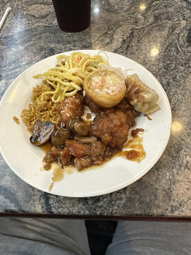 The Amazing : Shaved Steak/Chicken Entrees, Spicy Orange Chicken, Sesame Chicken, Coconut Shrimp, Plain LoMein, Pork Dumplings, Fried Crab Appetizer, Beefy Mushrooms, Broccoli, String Beans, Crab Rangoons, and Ice Cream.