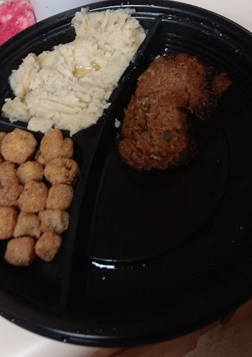 When she finally came back around again she had clearly forgotten our biscuit order as well as the still missing order of fries. She went back to get both, but shortly returned stating "they did not leave me any biscuits. Would you be willing to wait for another batch?". By this time we were almost finished with our meals so we said no to both biscuitsand fries. She disappeared, seemingly on the verge of tears.
