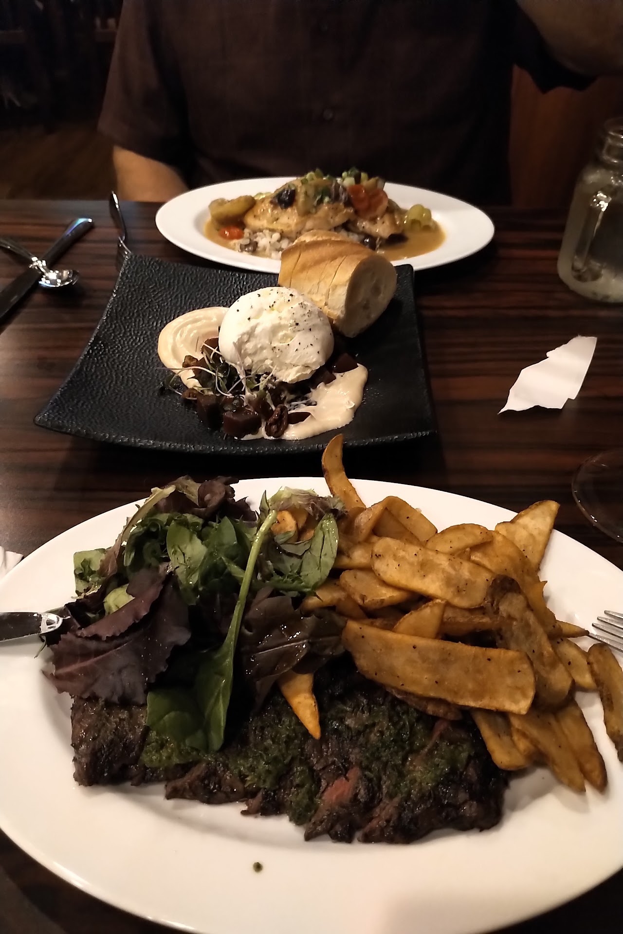 It hurts me to have to give such a low rating. I really wanted to enjoy this place as it's local to us, and we gave it a 2nd chance. On our 1st visit, we never made it to a table as we were passed by twice by others who came after us and were affronted by the owner when we questioned it and then left. We went back Friday night for another shot at dinner. There was now someone else co-handling the seating which worked much better although the place was only half full (as opposed to our 3 week earlier visit, also on Friday evening and they were packed) Our shy new waitress took our drink order and then a bit later our entree and a shared app order. I was on my 2nd draft pint (decent craft selection with a few NJ breweries offered) when our some food finally arrived.... but it was all together, both appetizer and entrees... ugh. Ok, let's see how the food fares. Not well, unfortunately. I was actually offended by the burrata pairings. Tahiti crema (tasted like thinned out hummus) and fresh sack filled mozzarella just should not go together. What seemed like jarred beets and candied walnuts were not enough to overcome the combo of hummus and mozz, which have similar textures as did the beets. Needed acid and something like toasted pita chips instead of the cold, untrusted sliced baguette. My chicken entree also had me fighting flavors. Artichokes, black olives, spicy peppers, white wine over overcooked mushy rice. They need to learn some sous vide methods or just cook the breasts 10 or 15 degrees less. They were dry. My wife's skirt steak was not too bad, albeit unseasonably. The char and chimichurri did help with the flavor but the potatoes seemed like they were prepared way earlier and just reheated... at least crisp them up. The new guy who seated us also seemed to help serve and did ask us several times how things were. We did mention the app served with the entrees and he just kind of shrugged it off on new employees . Needless to say we left moat of the meal on the table and will not be back. How far this place has fallen from the old location that had gotten to the point where even it was meh at best. Luckily there seems to be some life coming back to the area and Ringwood does seem to be growing with options. Who knows, maybe I will back up my words and bring some new food to the area soon. Thanks...