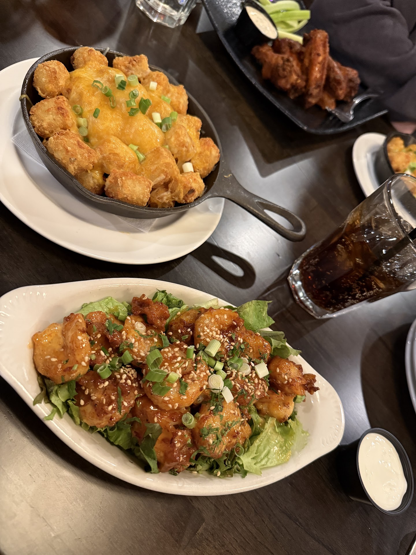Read moreWe started off with appetizer of fire cracker shrimp, even the lettuce underneath shrimp tasted good. Sorry no picture of this but shrimp was lightly coated with deliciousness. 3 of us ordered the RFG burger. The burger was flavorful and bun nice and fresh! Tomato and lettuce served on the side so I could add it to my burger if I wanted. Both tomato and lettuce were fresh too. Had side of French fries which were thinly sliced potatoes salted and peppered just right. One of us choose tater tots which looked pretty darn good too. Hubby got bbq ribs. I asked if they tasted as good as they smelled and answer was yes. I wish I could remember the name of our server because he is worth mentioning. All our orders were correct and he was very attentive. There was a trivia contest going on for any one interested in trivia! We just wanted to to catch up with friends and appreciated ability to close French doors so we could hear each other easily. Beautiful tin ceiling in the room we were in, wood chairs and tables and fireplace that almost had me wishing it was a little colder out so it would be on. Can’t wait to come back when it’s warm enough for me to go out on patio for dinner. We use to come here many years ago and eat on patio when it was Prime 15. Love eating outside here, feels...