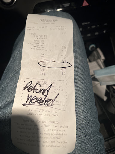 Went to panda today December 2, 2021 at store number 1491. I ordered the plate with chow mein and double orange chicken due, due to the fact that they didn’t have anything else that I requested. I also ordered a Eggroll. I give the young lady a older $20 bill. After five minutes, another young lady comes to the window and explained, they could not take the 20, because register won’t except it. I took back the 20 give her another one. Five minutes later they come and give me food and I’m like that order looks way too big to be mine. so I open the bag and there’s an orange chicken bowl as well as a plate of orange chicken and chow lien. they only put one scoop of orange chicken into this plate. There was no egg roll. I gave the food back to the young lady saying I’m sorry I think this is the wrong order. I ordered the orange chicken and the chow mein plate, as well as an eggroll. this isn’t in my order. The young lady remove the orange chicken bowl and handed me back the bag and I looked at it and told her no this is not correct. I ordered the orange chicken and chow mein plate That comes with two entrées and a side this is only one helping of Orange chicken. The 2nd young lady stated that is correct and that she’s sorry At this point I just wanted to go home and asked for a refund for my food and I was informed they don’t fo refund.I asked, I haven’t left your window so why can’t you give me a refund? I was told I am not authorize. I asked to speak to a manager the 2nd young lady who originally told me my moneys to old, Came to the window and I once again said take the food I just wanna refund. Once again I was told that there is nothing they can do they don’t have the authority to give a refund and I said fine let me speak to someone who has the authority and she goes there’s no manager working today. She stated I can remake your food if you want. I would just like to have my cash and I’ll go on my way. Yeah you’ll have to come back tomorrow to get that. I asked, if she would at least put on the receipt, refund needed and circle the amount. She wrote on it refunded needed, circled the amount and handed me the receipt.