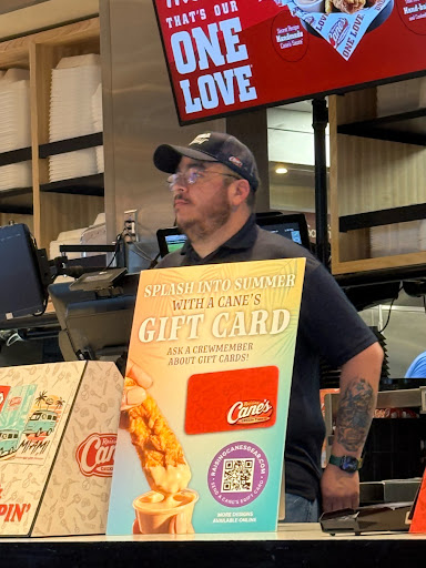 This was our first and last time at Raising Cane’s. Where do I begin? They’re trying very hard to imitate Chik’s drive through…and failing miserably. The lady taking orders for the car in front of us was ungodly slow. My husband was told, not asked, rather rudely from an employee that was just hanging around outside, not helping anyone or doing anything that looked useful. And she was scowling. So my husband pulled up a LITERAL foot because that’s how much space was between us and the car in front. Now we’re pulling up to order and I noticed that the car next to use is just sitting a ways back from the menus because the kid that is supposed to be taking his order is chatting to 2 employees that walked out of the restaurant it seemed just to talk with the kid who was taking orders. As someone who was in retail for over 20 years it bugs me when employees just stand about. Really? You can’t be doing something? I digress…so now we’re ordering food and my husband wants to share a 6 piece tenders. The only sauce these guys carry is their house sauce (which is god awful), ketchup and hot sauce. So, if you don’t like their house sauce, but you don’t want to dip your tenders into ketchup or hot sauce, you have to eat them dry. Whatever. We ordered extra fries and an unsweetened tea. Then, we round the corner to get our food. There’s this lady with definitely not a smile on her face and she’s flapping her arm like she’s trying to shake a bug off of it. We’re unsure what to do. Then she YELLS at us to pull forward, which we do and all the while she’s flapping her arm at us like a lunatic. We stop a few feet from her and she flaps at us again and so my husband inches forward until it looks like he’s going to hit her and then she flaps at us again. So he inches forward and she tells us something about keeping the cars going through. So my husband goes to pull up some more because the car in front of us has gone and she’s says No! No! This is fine. And then she proceeds to scream Keep the line moving! over and over and starts flapping her arm at the car behind us. This whole process from ordering to getting food is a wait, by the way, about 10 minutes. If you’re looking for fast go elsewhere. The only person who smiled the entire time we were there was the girl who brought our food. We made sure we had everything and we left. We saw that the food was in a styrofoam box, so we decided to pull over and eat before the condensation from the styrofoam made everything soggy. That’s why we don’t use styrofoam for food. Too late! In the less than 5 minutes it took us to find a place to park and eat the breading on the chicken was soggy. The fries were not soggy, but they also weren’t crispy. Let’s try the famous southern tea without all the sugar! Except it wasn’t unsweetened. It was so sweet it made my head hurt. My husband couldn’t drink it at all. So now we had to eat soggy breaded but somehow dry on the inside tenders without any drink or any sauce. So how’s the food? Mid at best. My husband thought the chicken was good, aside from the soggy breaded parts and he genuinely liked the fries. I, however, thought everything sucked. You know it’s funny…you have the balls to open right next to Chik Fil A and right down the road from Popeyes, but you have neither the food quality nor the service to back up that boldness. I’m not saying you’ll be out of business anytime soon, but I certainly will not recommend Raising Cane’s as a place to get good...