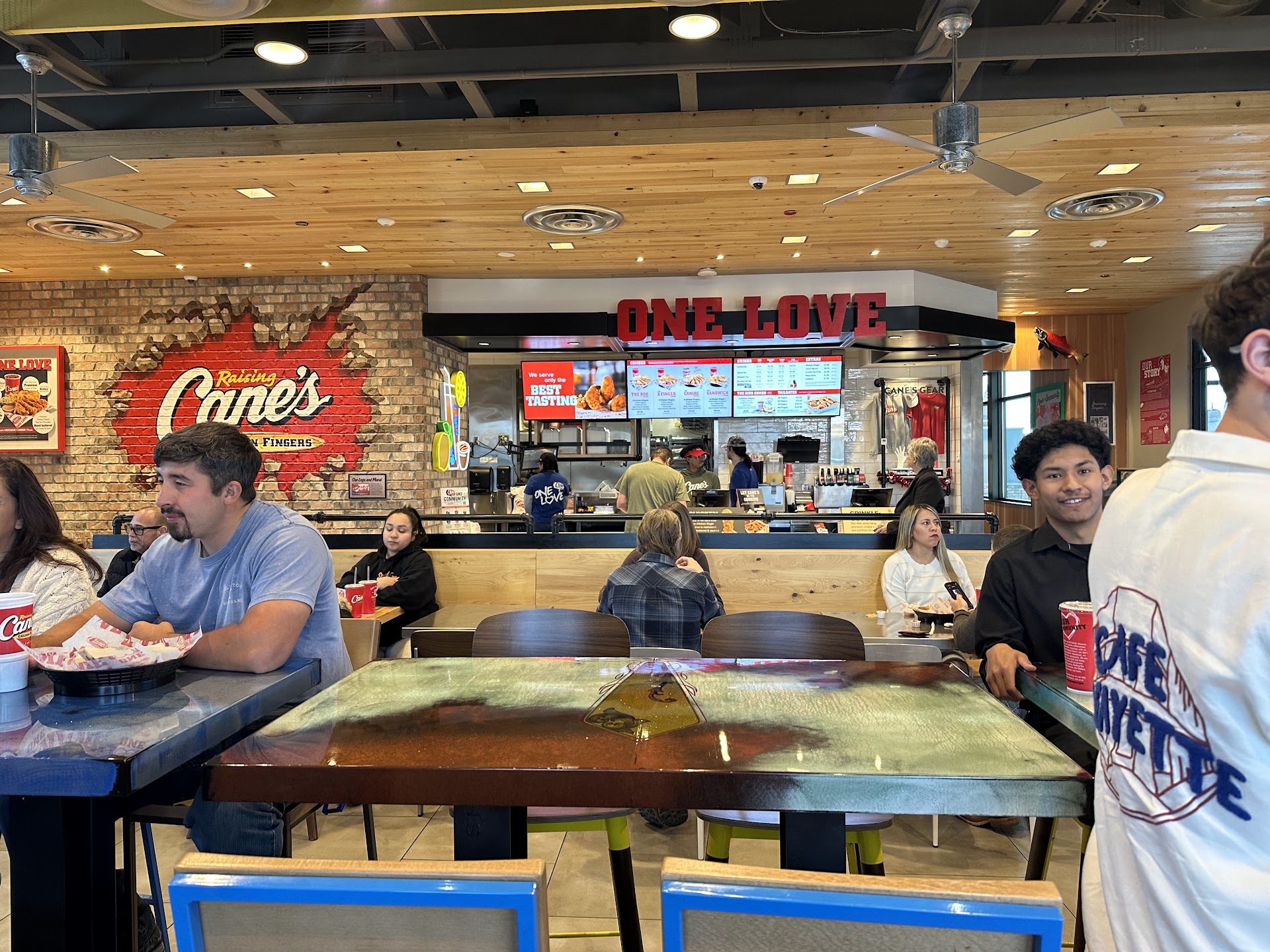 Canes as a food chain is great. So the food is good. Though the chicken tenders have gotten smaller over the years as you can clearly see with the store.