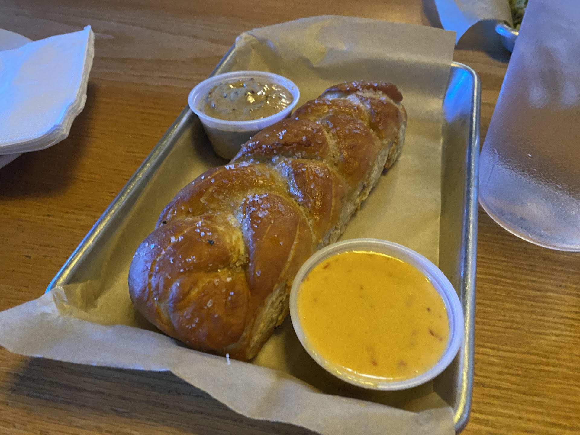 The place was packed, but it took a really short time to be seated. We went up to the bar to have a drink while we waited. I had the Wooden Teeth American Lager. That was a very balanced beer! No wonder it got a gold medal at GABF! My dad ordered the stout. Not sure the name of it, but it certainly was tasty!