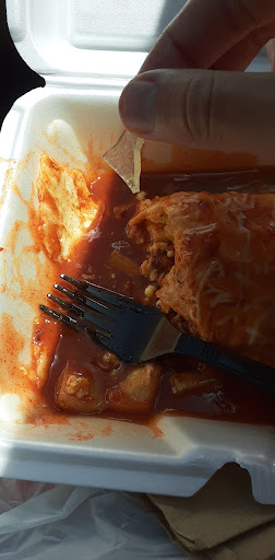 Ā Ā Ā Read moreAlthough the food is mostly always delicious, more often than not, the order is wrong. One of my big complaints is that when I order a side of EXTRA crispy bacon, they throw the slices in a styrofoam container and it melts through the container. This is very unhealthy given that the melted styrofoam gets in and on your food. When I let them know they will usually take care of it on my next visit but it shouldn't happen in the first place. I've repeatedly suggested and asked that they wrap the bacon in foil rather than waste and use an entire large styrofoam container. Better for the environment, probably less expensive for their bottom line but most importantly for me is my food doesn't get ruined! It's a simple fix that needs to be passed down to all their locations. There's also another annoying issue with how they bag the food. I've attached a photo showing how all the food (sauce) is off to one side and running out into the bag creating a large mess when you get home. I make sure to keep the bag upright and drive normal without any sudden stops or turns but because of how they almost always set the styrofoam boxes into the bag, they are always slanted at an awkward angle causing the chile/juices to run out into the bag. It would be helpful if they either used flat bottom bags or make sure the bags are upright when the food is placed into them so that when grabbed by the handles the boxes don't tilt sideways spilling the food.