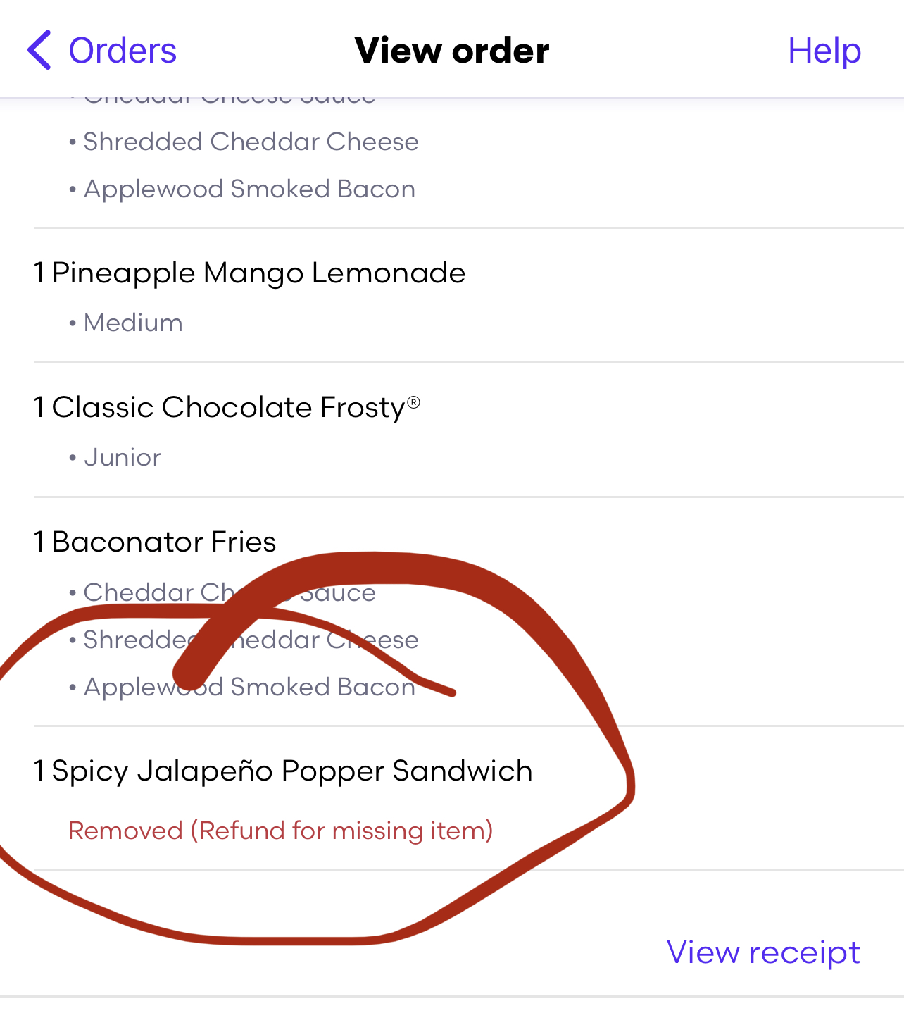However, my order at 1230 was perfect, as not only was my large chocolate Frosty filled to the top, but my junior bacon cheeseburger was made the way I requested (no tomato, add ketchup), and even looked pretty (see photo)!