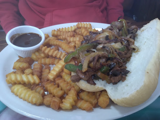 Tony went with Steak sandwich and fries. It was more like a phillie sandwich with onions peppers. Needed some oooey gooey cheese and mushrooms to take it to the next level!! But, he was happy!!! Fries Great hot Nd crispy!!!