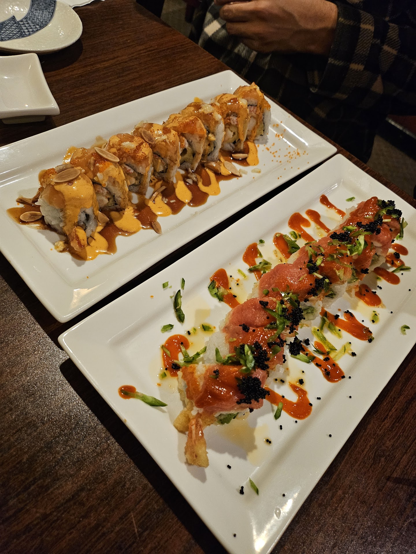 I use to really like this place, but recent customer service experiences have changed that. One time we came with the whole family, and they gave us an extra roll by accident. We thought we had ordered the roll because we ordered a lot. They left it there for several minutes and then realized they have made that mistake. They rudely came back to the table and picked it up to take it away, when we asked why they were taking it away they said it's not your roll. Mind you, this is during the pandemic, they can't pick it up off our table and hand it to somebody else. I guess they were anxious to throw it away. They said they could leave it if we wanted a charge on our bill. Despite having that poor experience we decided to try them again because we liked their food and we had been coming here for years. This time we got our food to go. Upon receiving scallops that were deep fried yet cold, we wanted to exchange it for a different roll. They weren't friendly or very accommodating but I am glad they did change the roll for us because we thought the scallops in our prior roll were supposed to be cooked but they were raw. Thankfully they did exchange the roll. Of course they made us pay the $0.45 difference. And no they did not apologize for undercooking the roll they were supposed to cook. The service is bad here. The food used to be really good but it's declining. And it's expensive! We paid $10 for five small pieces! The prices are going up and the quality is going down. We...
