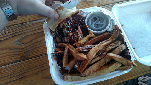 Read moreAbsolute garbage! This place is a disgrace to bbq and all southern food. Just ick. The fries are THE WORST-they taste fried two days ago and then microwaved. The brisket is super dry, the pulled pork is bland, and the pulled chicken is basic. Husband got a turkey leg and it was so overcooked it tasted like it was left on the grill since last thanksgiving. Don't even bother with the sides. Pass on the fried pickles if you actually like them because these leave a bad taste in your mouth (like they were fried in rancid oil). Fried tomatoes are ok for flavor but the batter is so hard it will crack a tooth. Even the sweet tea tasted like the water they used was direct from the Ohio River, mud and all, and left a terrible aftertaste. Their sauces are terrible, but we were thankful to at least have the traditional bbq sauce as tolerable. They take a long time to cook the food but it's not worth the wait. The tables, floors, and table condiments are dirty and sticky. No service here-just order food at the counter, give them your money, and they never come to check on you to see if you need anything. This place is a hard pass and we will...