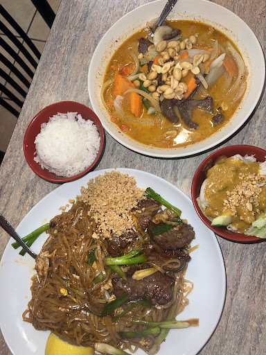 Although just about everything is mouth watering, I’ll LIST A FEW OF MY FAVORITES: Satay Chicken Appetizer (tender, juicy chicken on a skewer with a peanut sauce to dip). Roti Canai Appetizer (soft, melt in your mouth dough triangles with a potato curry dipping sauce). Tom Kha (coconut based soup w veggies & protein) Thai Basil Fried Rice THIS IS A MUST (fried rice tossed with basil leaves, veggies, egg, and protein. It is the only rice I can reheat later and still enjoy like it’s fresh. It doesn’t harden or become stale). Red Curry Soup Entree (very flavorful and amazing soup - a little spicy) Saigon Beef Entree (sizzling beef cubes tossed in a brown sauce with onions and broccoli - my favorite entree).