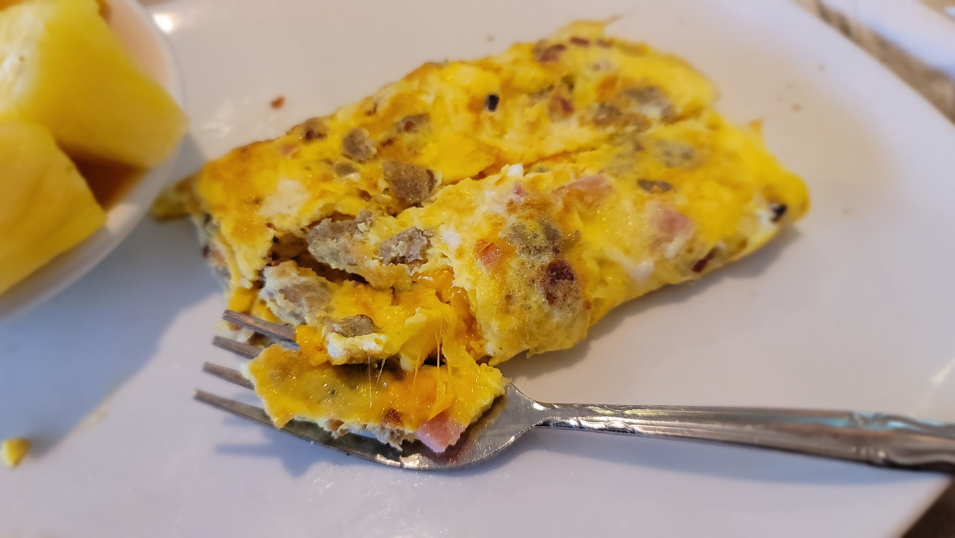 Read moreThis was our first time coming to this restaurant. The waitress was very friendly and she made sure to keep our cups refilled as needed while we were there. I ordered an egg and vegetable scramble on top of hash browns with a side of toast and it was amazing, a tad greasy but still delicious. My daughter ordered pancakes, scrambled eggs, and bacon. The eggs were fine and so was the bacon but the pancakes were too dry. My daughter doctored them up with butter and syrup but there still weren't very fun to eat because of how dry they were. The hot chocolate my daughter ordered was good and my coffee was just fine. The decor was a little lacking and they could do with an update for sure. When we were leaving my daughter was happy to pick out a lollipop that the cashier offered her.