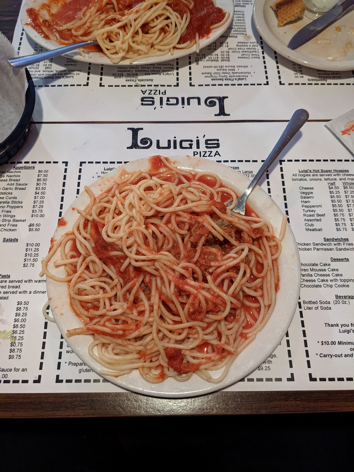 Ā Ā Ā Read moreOur server was very sweet and kind but seriously the worst food my boyfriend and I have ever had. We canāt stop talking about just how terrible it was š I went here once by myself and got a calzone to go, apparently the delivery driver had taken it with him so they made me a new one and gave it to me for free for the inconvenience which was very nice, but the āLuigiās favoriteā calzone was dry and just terrible. I thought I would bring my boyfriend and give them another try and try some other things on the menu, and again, just horrible. The nachos are just chips with melted cheese only on top, nothing else. The dinner salad was just made of very finely shredded lettuce which made it hard to eat, and the alfredo was spaghetti noodles with what tasted like the cheapest store bought alfredo sauce they could find out of a jar. My boyfriend got a medium pizza which he also said was so bad, we decided not to take anything home. (He is not picky or hard to please what so ever so I was shocked lol) and the ingredients are surely frozen and not fresh. I was sick after the first bite of Alfredo. Though our server was very sweet and it wasnāt her fault, it was the worst dinner Iāve had out anywhere probably ever. But on the flip side their cookies are very good! š Try at your own risk. Wonāt...