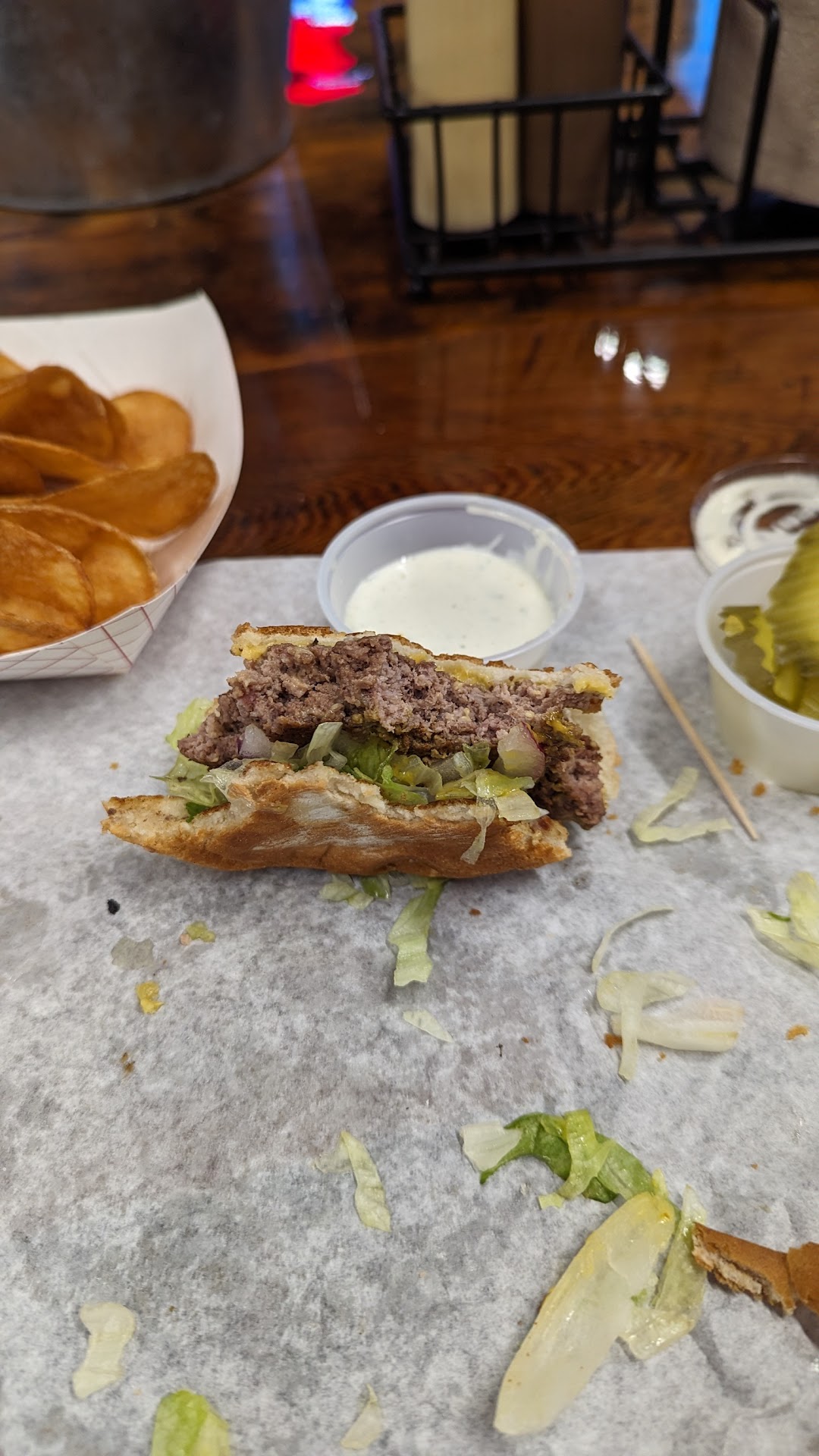 This place is so underrated! & I am honestly upset I have never ate here before yesterday! This place is so cute, very clean, the staff is very welcoming, u can tell these people know how to run a business & that their staff members actually enjoy what they do. I ordered a bacon cheeseburger with chili cheese fries & SEVERAL modifications. The kid at the front was training & not once did he get frustrated or aggravated with me for changing so many things on my order. They were pretty busy & my food was delivered to me at the table in about 15 minutes HOT & FRESH. The beer is cold, so cold it had ice floating in it. Which I loved so much I had to order a second one. & I don't usually order more than one beer with dinner so that's saying something right there.