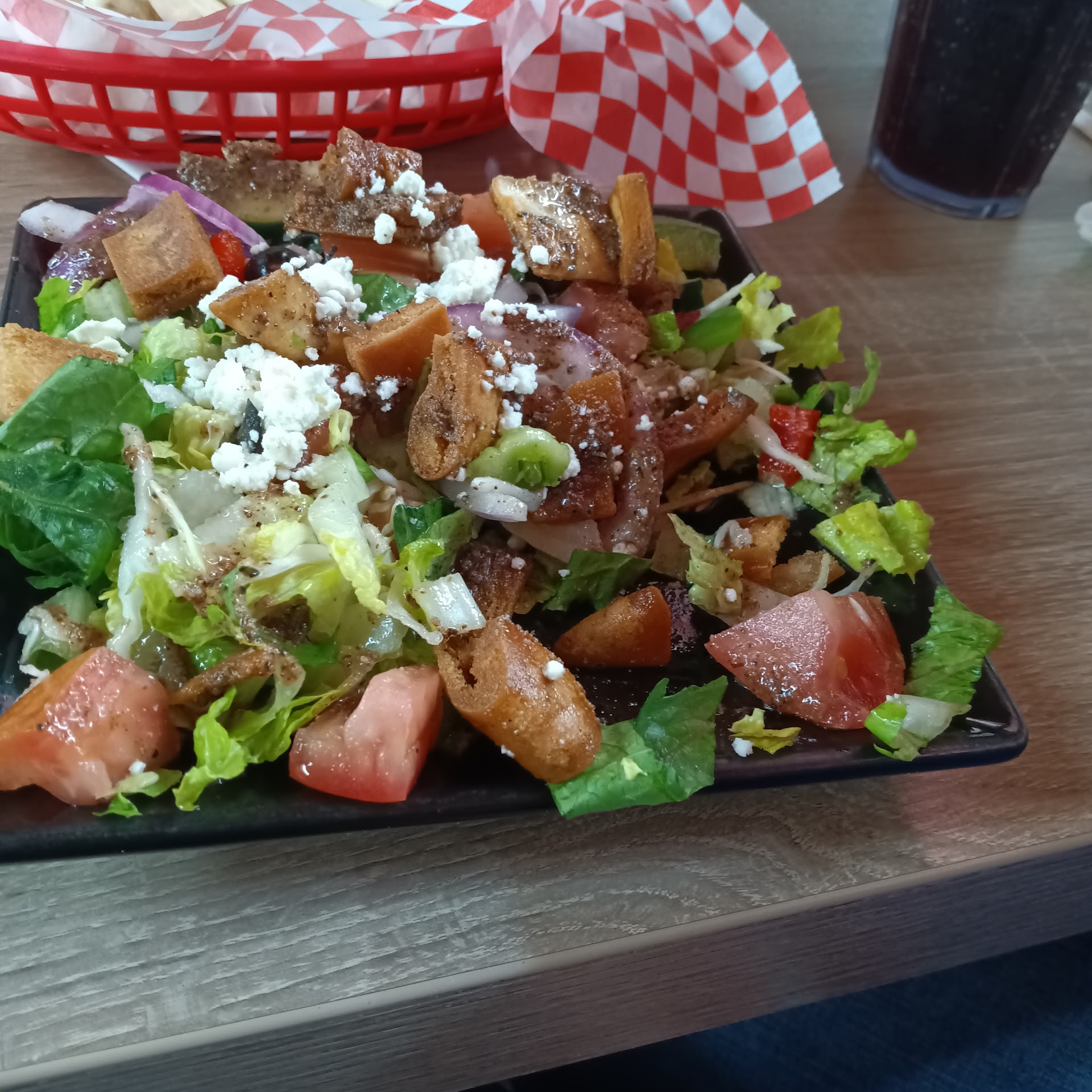 Read moreGot take out here this afternoon. The falafel was very dense and a little greasy, but had good flavor. Ordered cucumber yougurt salad and a side of Tzatziki which are apparently one in the same here. That would have been nice to know when l ordered, but no one told me. The cucumber yougurt salad was just O.K, . ditto for the Chicken Kabob, which has decent flavor bit was tough. They packing job sucked AMF e etching leaked everywhere due to not being put in airtight containers. So thay needs fixing. Also falafel needs to not be put into a container along with wet ingredients and garnishes because it gets soggy later if you don't eat it immediately. So if you get takeout, check your containers and either have them repacked or get extra napkins and keep it level. The have good selection of Mexican Popsicles, Cream pops, and ice cream in cases in the dining oom. I did not see these listed on the menu. I bought a pecan Creme pop that was very good. Those are about. 3.00$ They also had a rice pudding cream pop, strawberry cream pop, and various everyday and some exotic fruit Popsicles that l will go back and try later. I know that it's not necessary supposed to be the specialty here, but l that cream pop was the best thing l tried here. So maybe they should focus more on selling those and advertising them? People would buy them if they knew they were there! If you want great falafel and tzatziki, go to Dimassi's Mediterranean buffet on Camp.Bowie. They also sell takeout buffet items by the pound, so l go there and get like 4 -6 of those babies with a couple of tzatziki containers along with a Rosewater, and I'm a happy camper. That usually comes to about 7-10 dollars depending on the weight at checkout. Totally worth it though. The best falafel lve tried, and I'm at least 50, so this ain't my...