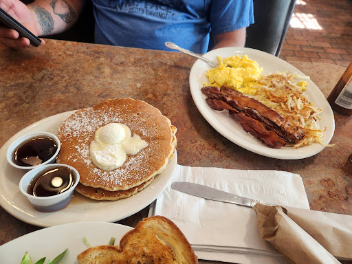 I am eating the food i bought there as I am writing this. When we were sat down we get my 17 month old son's order in so he doesn't have to wait long and it takes him a while to eat. His food arrived quickly, actually before our waitress even decided to take our order. My 17 month old son ate two large pancakes in 30 minutes and still no sign of our food. Place wasn't busy so I am not too sure what the problem was. My son was done and ready to go. He is a little guy and doesn't understand why we still needed to be seated. So I walked him around the restaurant another 15 minutes while my wife and other son ate as fast as they could. I never even touched my plate. My wife asked the waitress to box it up for me. When the manager took my money for the bill he didn't even ask how the service was. He did to the customer before me. I guess he knew how my service was. I am highly disappointed in the service and recommend any one with small...