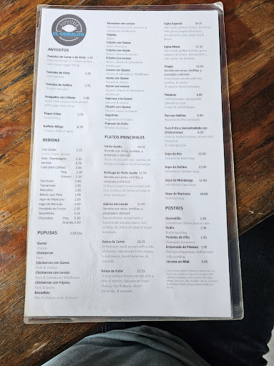 Read moreI stumbled upon this place when I was driving around looking for a bite to eat with the family. I've had Salvadoran food before, but ask my mom what she thought about a good place to have Salvadoran food. She said she knew about this one restaurant, so we checked it out and I thought I would give it a try. I swung by, and they were empty (too late for lunch and a tad early for dinner). I walked right up to the counter and got seated right away. I got three pupusas, and they were ready in ten minutes. The pork & cheese one was fantastic and super gooey. The pork one was by far my favorite with a nice mix of meat and cheese. The bean one was my least favorite as it was a tad dry. The pupusas themselves were fresh, hand-made, and were bigger than I expected. I kind of just wish I had gotten two of them as three just made me so full. But I could not stop eating. I also had sopa de res (beef soup), and we also got yuca con chicharrón (casaba & fried pork). Everything was so yummy! If I'm around this part of town, I'd definitely stop here again. I'm not disappointed at all with this place. ...