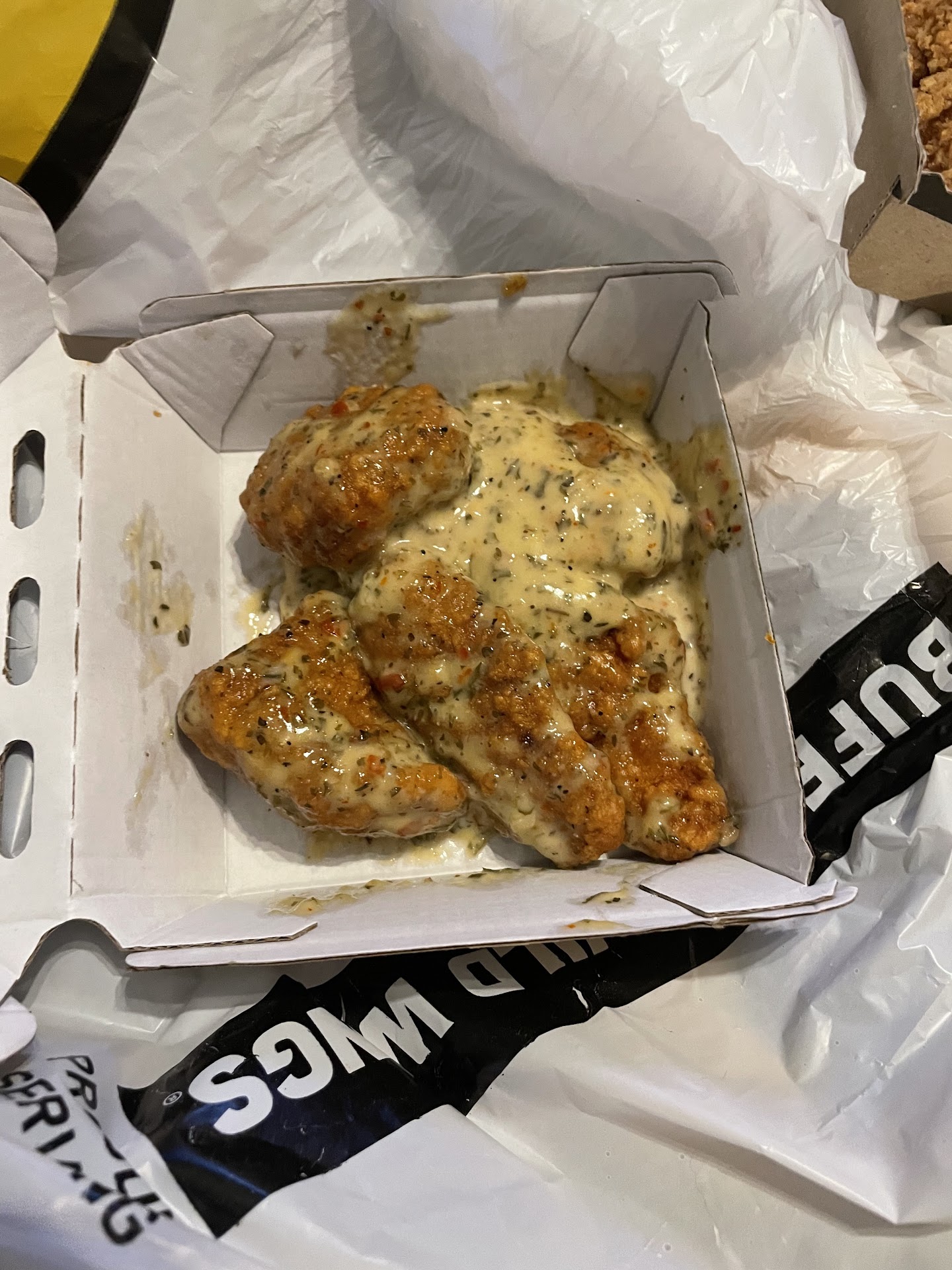 Read moreI have eaten at BWW 3 times and after my last visit yesterday, I do not intend to visit again. I'm sure it's a great place to get drinks and watch the games or the fights, but I have no respect toward them as a food establishment. Each time I have been there, I have ordered different items and I have not been impressed whatsoever. The prices of the food are also ridiculous because I should be getting my money's worth out of the food and the quality of it. Yesterday, I met some friends to get some food. They were seated before I got there and our waiter seemed very careless and clueless the entire time. We waited about 5 or 6 minutes before he came to take my drink order and their food orders. I waited a good 10 minutes before I actually received my water and drink, and I had to ask for it. He said he was "waiting for the bartender to make the drink and it would take a minute." The establishment was not busy and I don't know what he was waiting on. Besides that fact, just bring me a water immediately!!! When our food came out, my wrap did not have sauce on it, my friend did not have sauce on her tenders, and my other friend bit into wings that were 'wild' instead of 'mild.' The TV's in there are so damn loud, the waiter got the sauce wrong and my friend was red faced and sweating. When the waiter came back to our table, our drinks were empty, my friend was sweating and when he explained what had happened with the wings, the waiter said he was 'sort of deaf.' He did not immediately offer to take the food back and redo it, he kind of looked at us like 'what do you want me to do about it? I just work here.' After my friend requested new wings and asked to refill ALL our drinks, the manager brought the new wings out and did not ask us how our food or our service was, she dropped them and walked away.