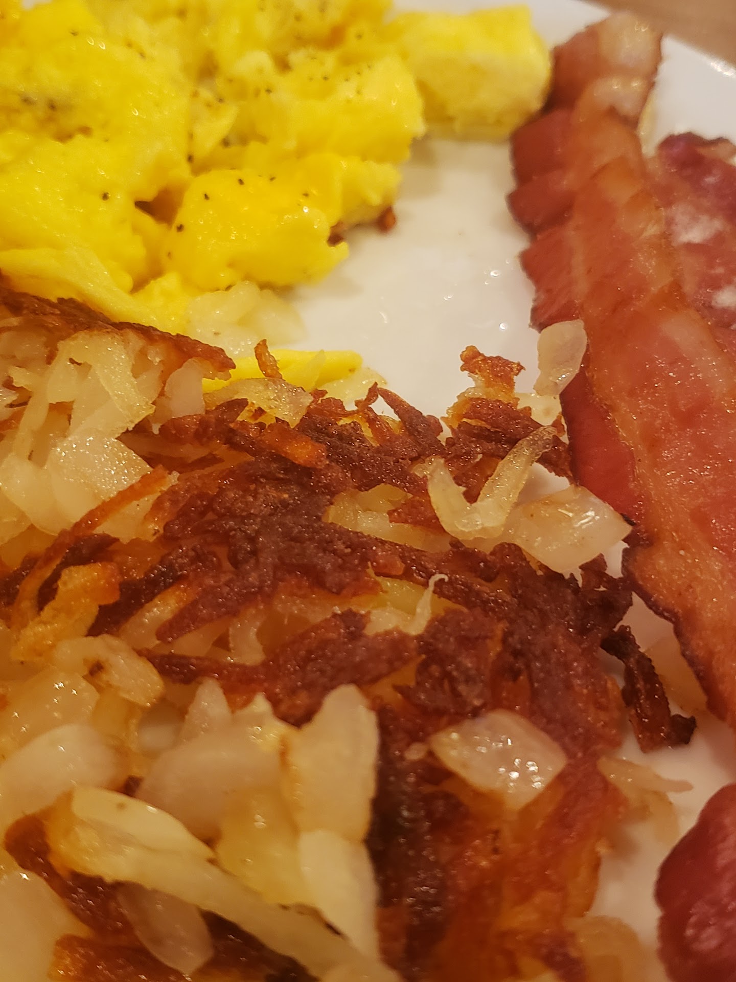 Read morei am usually very patient with restaurants because i know everyone is short staffed due to covid but this was so bad that it tested my patience in the worst way. they sat me at a two top table. it was such a tight fit that i couldn't get my feet completely under the table causing me to sit twisted. i ordered eggs scrambled, hashbrowns with onions,crispy bacon and pancakes. the food arrived timely despite the fact that the servers were visiting with a table of regulars. i questioned the server when i saw dark spots in the eggs. ahe told me that it was butter because that is the only thing they put in the eggs and then left. they were odd tasting so needless to say i didn't eat them. the hashbrowns were just burnt! i tried to eat them despite that but even if i could cut them into small pieces there was no flavor and they were so crunchy i worried about breaking a tooth so there was bno way i could eat them. the bacon was limp and undercooked to my liking. i paid for a completely overpriced meal then went somewhere else to have breakfast. if you have interest in a good breakfast i would look...