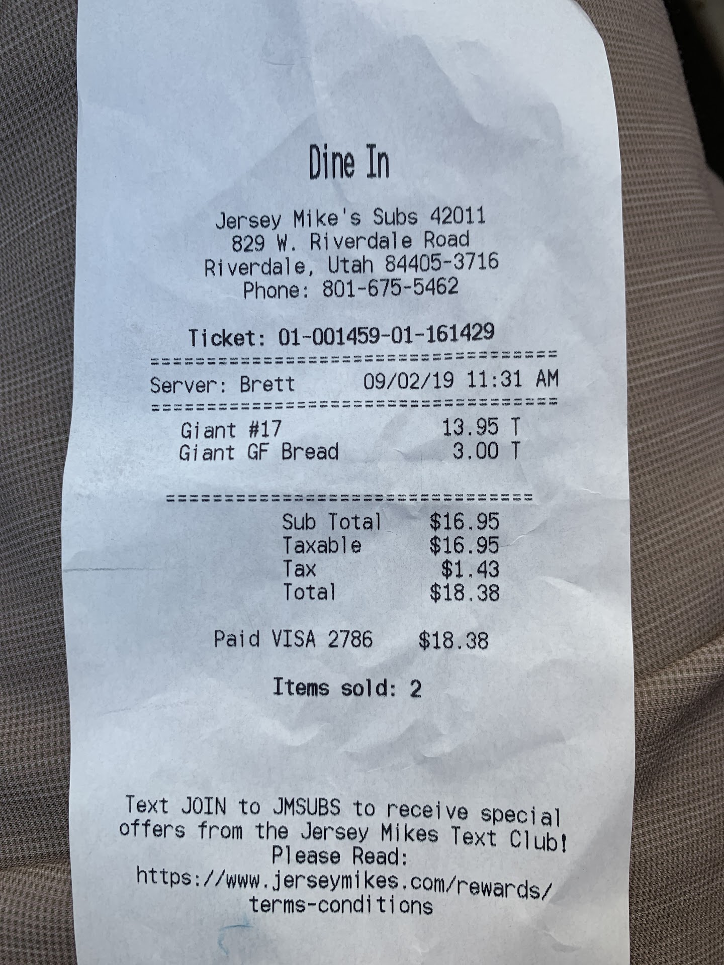Read moreLet me preface my review by stating that I am a loyal and frequent flyer of Jersey Mike’s. I wrack up those shore points. I love me a sub sandwich. However, last night at about 6pm I ordered my beloved tuna sandwich with all the fixings at the Riverdale location. By 8pm I was so nauseous and my stomach hurt so bad my eyes were tearing non-stop. By 8:30pm I was praying to the porcelain gods with my head dangling in putrid submission. After expelling what I can only assume was contaminated tuna, I quickly threw down a handful of activated charcoal pills to try and calm the roiling ocean that was now my stomach. I will now be unable to look at or even smell a Jersey Mike’s sandwich without gagging. I am so sad that this was my experience as I’ve eaten there hundreds of times without issue. But I will have to avoid this place for awhile until I can...