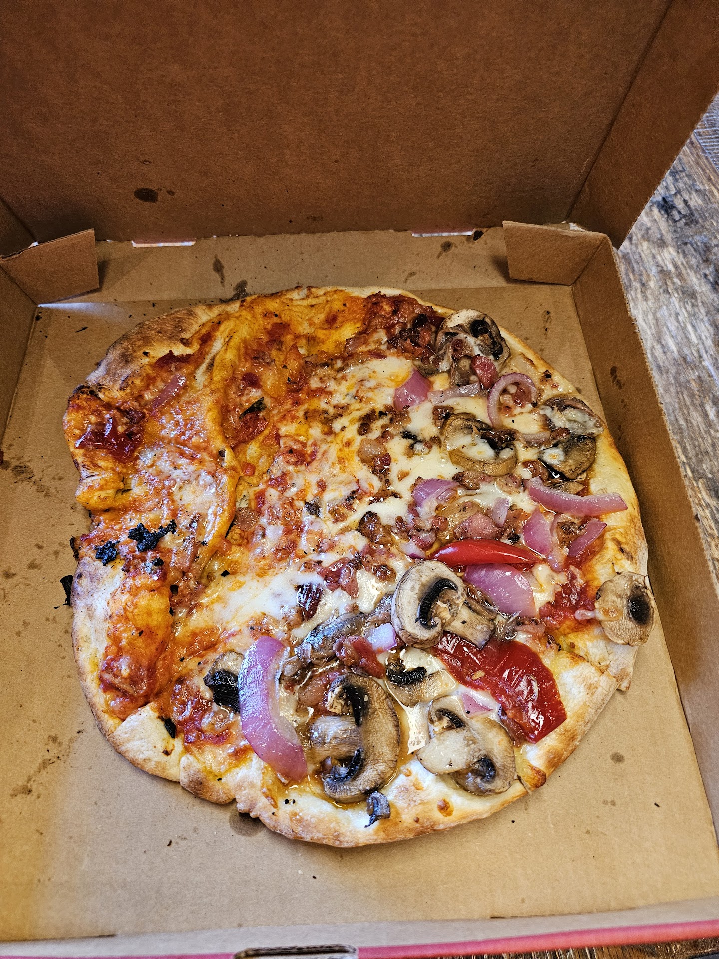 Their online ordering is also very consistent. I haven't had a single order received incorrectly and I've always done some kind of build-your-own. Their take out boxes are also unique in that they are two separate parts rather than a folded pizza box, which I think is sturdier than the traditional pizza box.