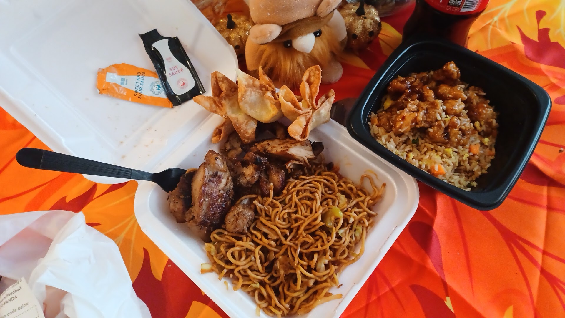 Food aside, tables were dirty. This seems to be a usual theme with Panda. Staff are dismissive and uncaring about speed of service or people who are waiting on entries to be cooked (in this case for another batch of teriyaki chicken). It took 25 minutes for the chicken to finally finish. After about 15 minutes we took the portion of our Togo order that was done, the orange chicken, and started eating it as we wait. It was getting cold anyway.