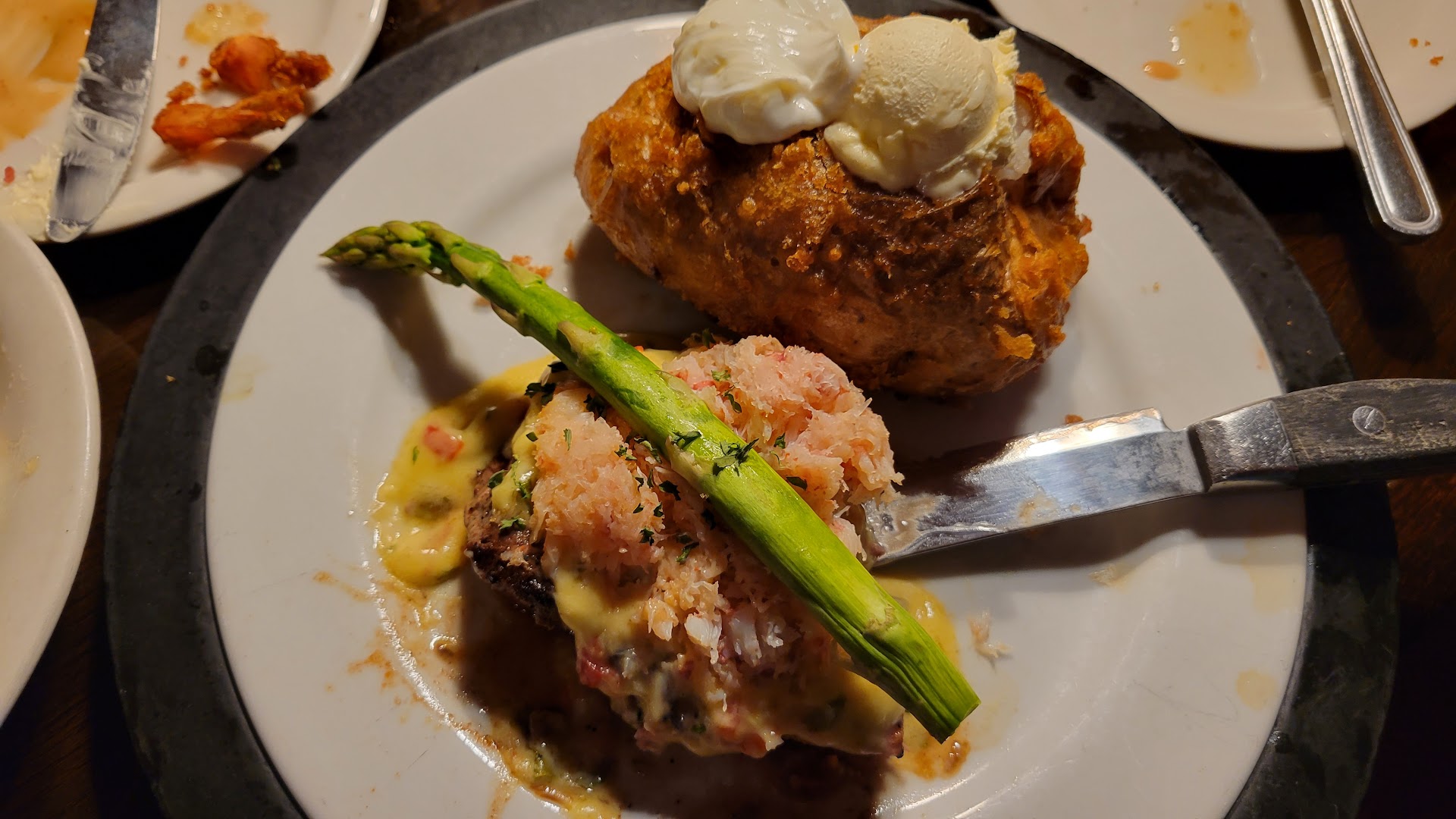 Got a filet mignon with Asparagus, the meal was incredibly bland, I know filet mignon not a lot of fat to flavor it but keep reading. Maybe they just don't do this cut and side well? I'd take it thees items off the menu if so, I won't come back based on this experience.