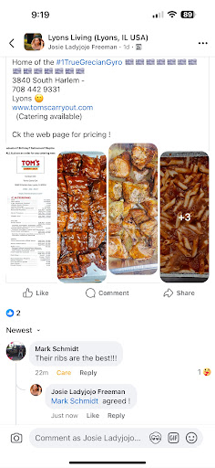 Read moreI have been coming here for years on and off , but I stand by their food QUALITY. If ever there is no satisfaction please let the owners have a chance to make things right, they are old school and believe in quality and making their customers life long customers. I do know TOMS CARRYOUT have amazing food Specials - from Mondays - Thursdays and The famous Sunday Specials are the Fall off the bone Full slab ribs dinner for $19.99 They are famous for the Gyros with their secret sauce ! ( gyro specials on Thursday's ) Greek salads are the BOMB ! And the toppings are the POTATOS ! Fries, Greek potatoes , or Broasted Potato's ! Mexican food too ! Meaty with endless trimmings : )