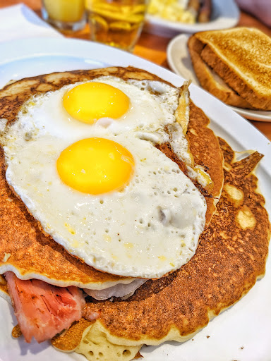 Read moreYia Yia's Pancake House is an absolute gem! I had the pleasure of dining multiple times here for breakfast, and it was an unforgettable experience. From the moment I walked in, I felt like I was in for a treat. The ambiance was cozy and inviting, perfect for a relaxing morning meal. The service was prompt and friendly, making me feel right at home. I Ordered Tina's Combo at Yia Yia's Pancake House. It is a delightful breakfast choice that combines the best of both worlds. When the plate arrived, it was a feast for the eyes. Two perfectly golden pancakes, each the size of a dinner plate, formed a base for this scrumptious creation. They were flawlessly cooked, with a slight crispness around the edges that gave way to a tender, fluffy interior. right in between these pancakes was a generous portion of succulent ham. The ham was savory and had a slight smoky flavor that added depth to the dish. It was thick enough to satisfy but not overwhelming, allowing the other components to shine. The highlight of the dish, without a doubt, was the two sunny-side-up eggs perched on top of the pancakes. The eggs were cooked to perfection, with whites that were just set and yolks that were gloriously runny. When I cut into them, the yolks oozed out and mingled with the ham and pancake, creating a mouthwatering symphony of flavors. Each bite was a harmonious blend of sweet and savory, with the pancakes providing a subtle sweetness that balanced the richness of the ham and eggs. The combination of textures and flavors was a true delight for the taste buds. I left Yia Yia's Pancake House with a full and happy belly, already looking forward to my next visit. If you're in search of a breakfast that's both comforting and delicious,...
