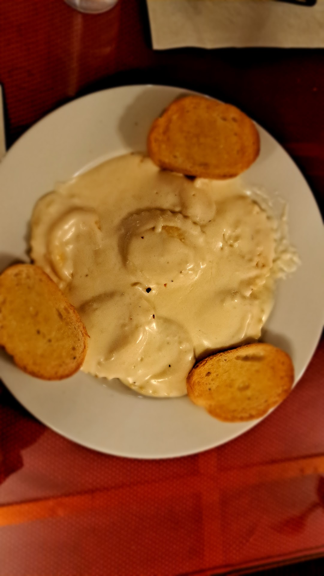There was so much food left over we thought it would just be easier and less confronting to take it home and throw it in the garbage can there and that's what we did. Our server was delightful and we much appreciated the great service she provided us. And our tip reflected that as well.