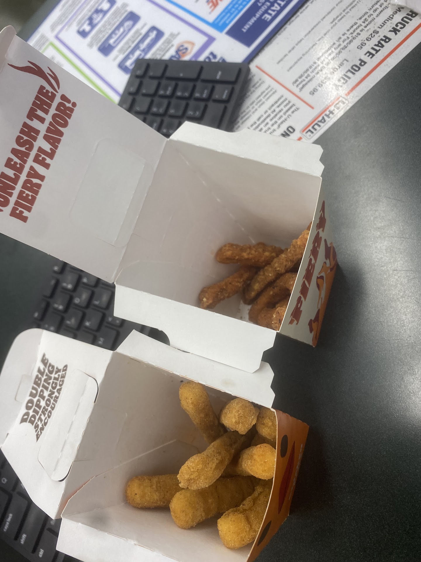 Ā Ā Ā Read moreI donāt usually eat BK as I donāt like many of the menu items but I Came in on my lunch break, super excited for chicken fries, and not a single person greeted me nor the young lady that walked in behind me.. it took at least 10 mins for someone to finally come take my order.. there were over 6 employees working and it still took over 15 mins to get my order(only 2 orders of chicken fries and a 4pc mozzarella fry) during this wait I watch an employee dump fries into the warming that were still DRIPPING oil and noticed that my feet were sticking to the nasty, unmopped floor.. when I finally get back to work to eat, one order of the chicken fries look and taste like theyād been sitting there all day and the other order seemed to be fresh but even those tasted like they were made in really old oil⦠that is absolutely disgusting.. i watched as they served DoorDashers orders that theyād just prepared in the moment before i received my order which was ordered FIRST⦠I wouldnāt have been so surprised if it was a bunch of teenagers working but everyone there was grown as hell Iām glad I donāt eat here⦠if I could have gave zero stars, I would...