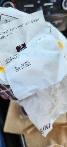 Ā Ā Ā Read moreI was here a few weeks ago and had a great experience so I kept my expectations high and decided to come back today for lunch (big mistake). I ordered double cheeseburger meal with no onions. The order taker was quick to tell me that the burger doesn't come with onions--O.kay--then I have nothing to worry about, right? I place order pull around to pay and go (again, expectations are high). I like to eat my fries while I drive (who likes cold fries?) so I eat a few then realize there are no napkins in the bag! Really? Are we rationing?? So, since I had just used hand sanitizer, I figured that licking my fingers could add an extra spice to the salt and would improve the otherwise dry and lukewarm potatoes! I made do. Then I get to the burger...well, look at all of my pictures and let me know if you see the problem....EXACTLY!!!! Nowhere on my receipt or the ticket attached to the bag does it state BACON! Look closely--the grill ticket matches the burger but the order number does not. Yep, I was given someone else's order and the truly sad part is...I. don't. eat. pork! So, that burger went straight into the trash! The best part of that $8.92 meal was the large...