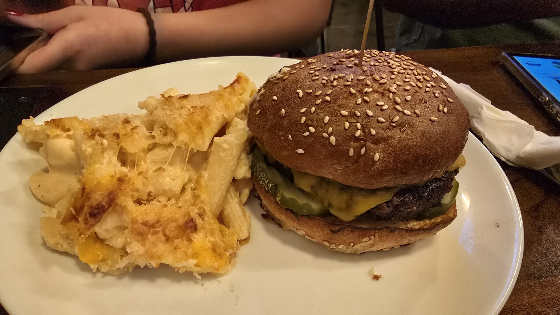 Bushfire burger ( well done x2) -For starters, the patties are frozen and when grilled they are mushy. -no seasoning in the meet -Ever had Sam's Club frozen patties? These were identical -Mac and cheese was Okay, needs more cheese flavor Order again...No