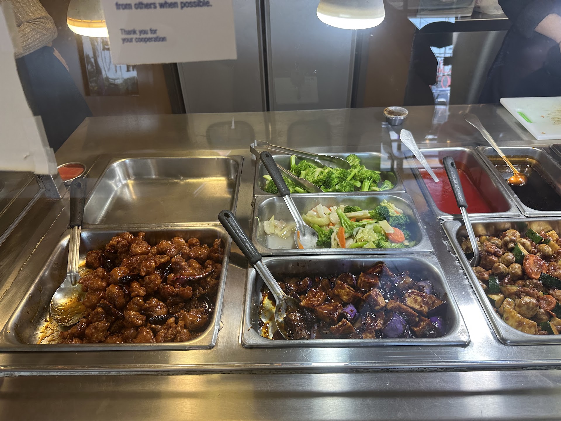 I grabbed the 2-item combo with fried rice, spicy orange chicken, and beef with mushrooms. The chicken had that sweet-heat crunch, and the beef was tender and loaded with mushrooms and veggies. The fried rice rounded it all out—simple, satisfying, and super filling.
