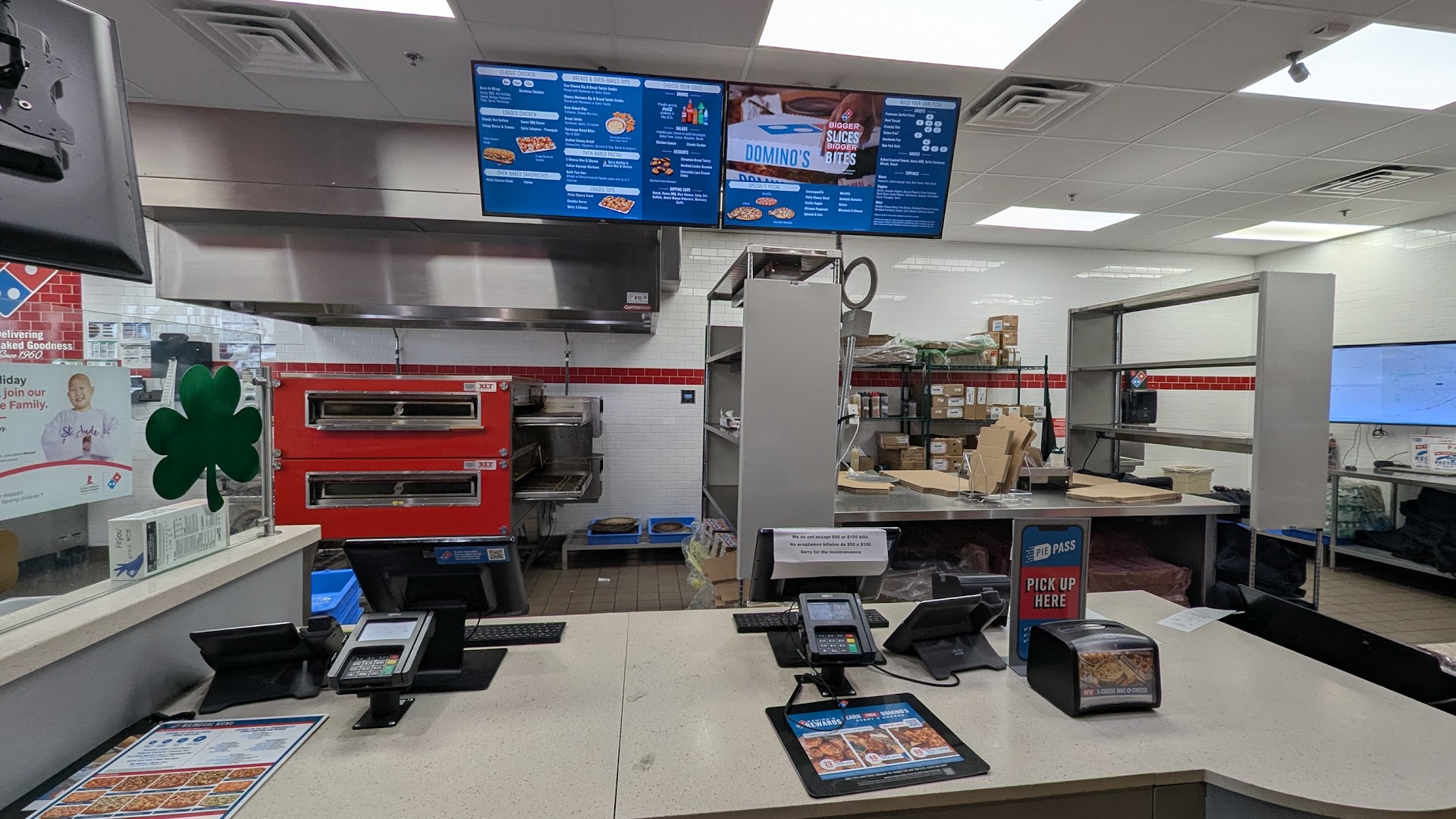 As for the 2 pizzas which were the Cali Chicken Ranch pizza and a ultimate peperoni pizza, they were very greasy, they looked somewhat burnt but when you took a bite they had a good soft crunch to them which to me is at my liking besides the greasy pizza part, the pizzas were well made but because of what i said before i dont think ill ever come back to this dominos location ever again and mainly because of the price of just one pizza which is not on the recipt for some reason. Id also like to add that i ordered a peperoni pizza at the same location before for delivery and got a very burnt, flavorless, greasy pizza.